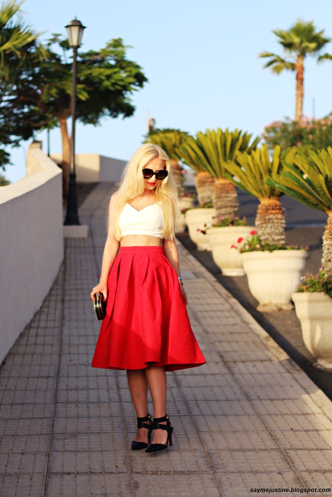 Dzisiaj jest nie tylko moj ulubiony kolor w akcji, ale tez jedna z moich ulubionych kombinacji- crop top + spodnica z wysokim stanem, czyli talia w roli glownej ;)