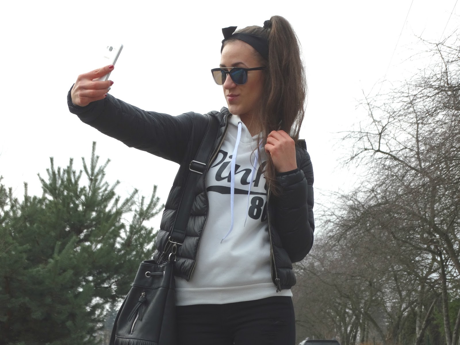 Zobacz oryginał pon., 22/02/2016 - 13:00Hej ! Dzisiaj mam dla Was stylizację z soboty. Typowo na sportowo z moim ukochanym zestawieniem kolorystycznym. Aby nie było zbyt typowo i nudno - spodnie z dziurami, torebka z frędzlami, opaska we włosach i wysoki kucyk dodają stylizacji charakteru. W mojej szafie zawitała kolejna para spodni z dziurami - uwielbiam je, kolejne z she in, które są mega mięciutkie przez co bardzo wygodne. Mam nadzieję, że stylizacja Wam się spodoba. Dzisiaj duża dawka zdjęć, zapraszam !:)