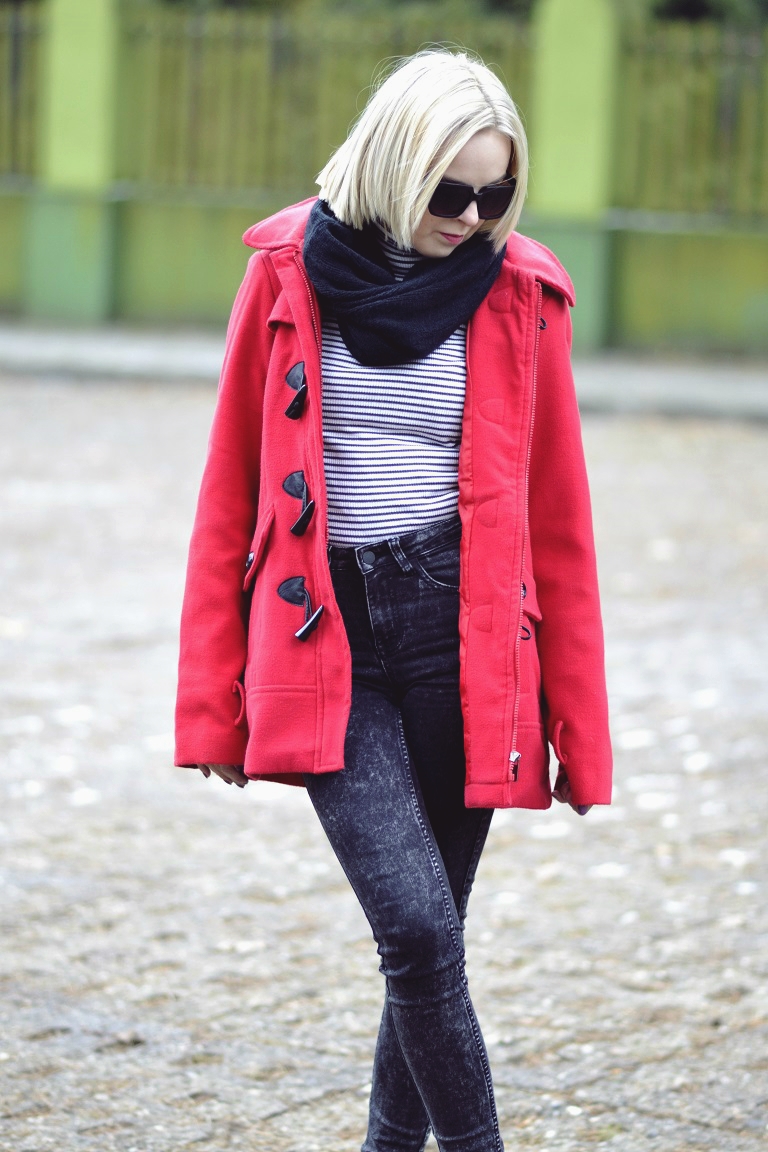 A teraz kilka słów o stylizacji... Przełamaniem czerni, szarości i bieli jest czerwony płaszcz, który chyba kiedyś już Wam pokazałam. Reszta stonowana, czyli nic szczególnego się w tym roku w mojej pierwszej stylizacji nie zmieniło :)