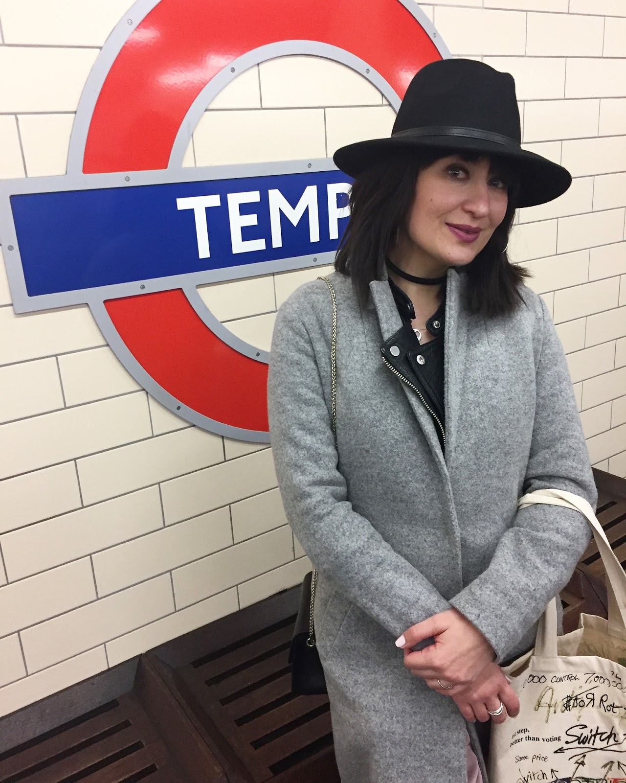 Slip on Dress: River Island Trainers: Redherring Leather Jacket: Pull & Bear Coat: New Look Hat: Atmosphere Bag: Furla