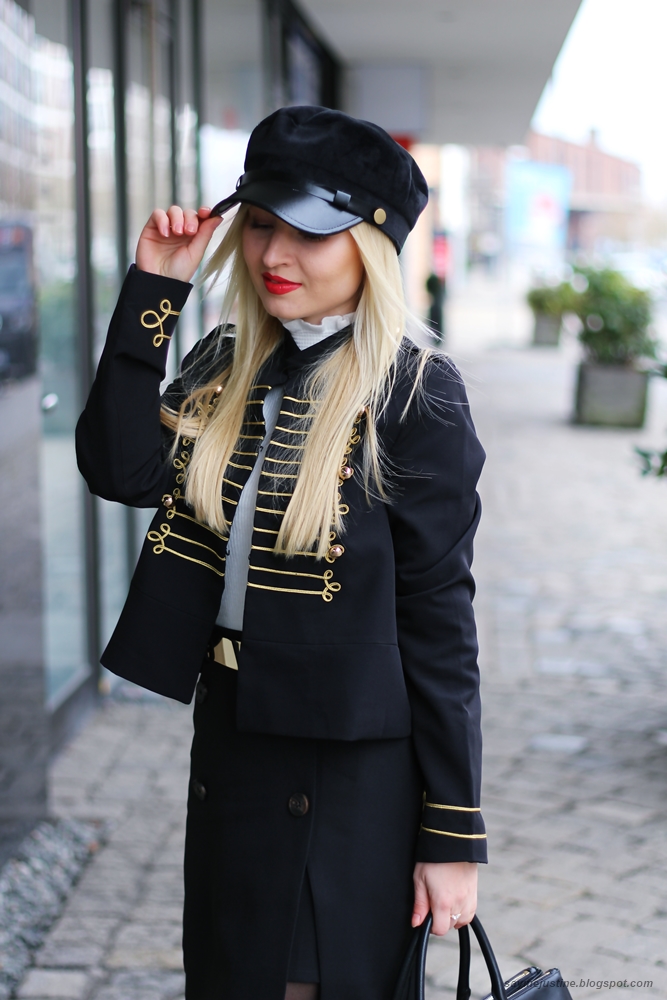 PL: Marynarki i kurtki w militarnym stylu to trend, ktory dominowal jesienia/zima, ja swoja marynarke bede na pewno nosci jeszcze wiosna! Bardzo podobaja mi sie jej zlote zdobienia i guziki, jednak nie mozna przesadzac z dodatkami, im mniej tym lepiej, ta marynarka dominuje caly look.