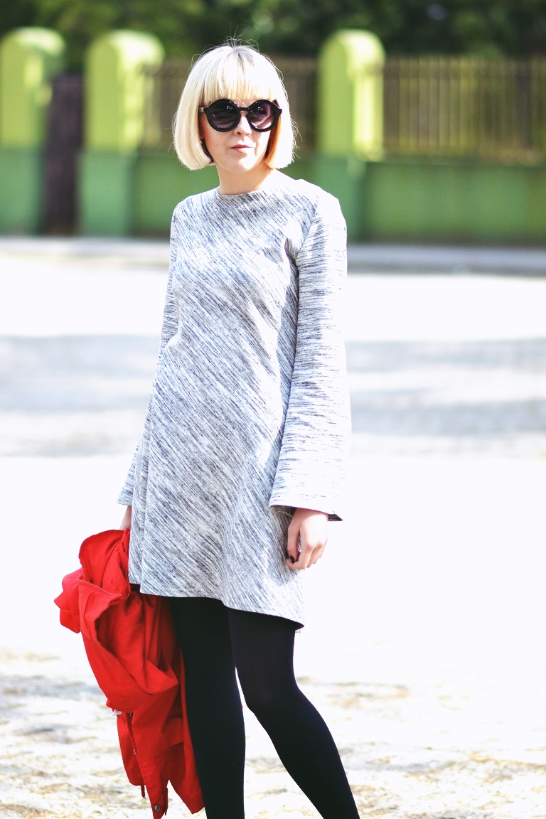 Sukienka NEW YORKER / Parka SH/ Buty DEICHMANN/ Okulary HOUSE