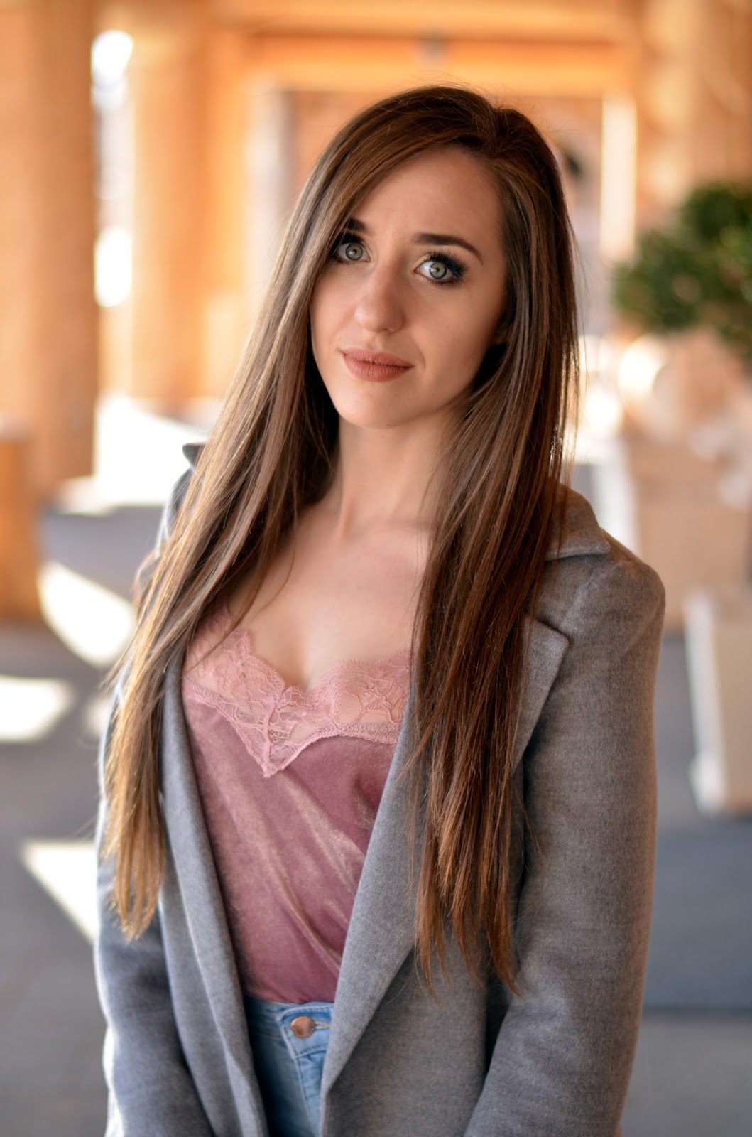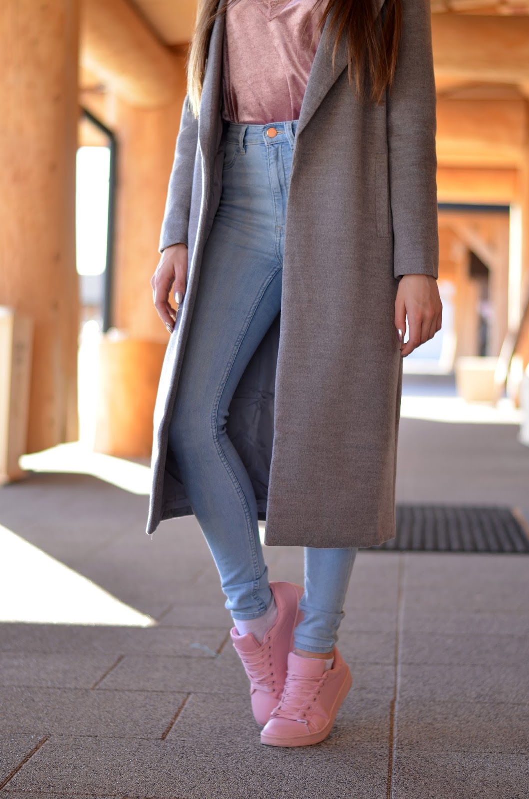 Zobacz oryginał ndz., 02/04/2017 - 20:00Witajcie:) Przybywam z wiosennym zestawem w pastelowych odcieniach. Całe szczęście wraz z nadejściem słońca mam ochotę na jasne kolory, a nie tylko czernie i szarości. Zwykle unikam jak ognia długości 7/8, a jeśli już decyduje się założyć coś takiego dobieram do tego szpilki. A tutaj? Jestem niziutka i w dodatku założyłam płaskie obuwie. Myk, który pozwolił mi wydłużyć sylwetkę to spodnie z wysokim stanem. Dzięki czemu nawet w niekorzystnej dla mnie długości czułam się fajnie. Co prawda kusi mnie skrócenie płaszcza do kolan - byłby bardziej uniwersalny i na co dzień, ale muszę się jeszcze z tym "przespać". W ostatnim czasie polubiłam się bardzo z "bieliźnianymi" bluzkami, które noszę nie tylko do szpilek, ale i też do adidasów. Cała ja, lubię czuć się w czymś swobodnie. Welur był bardzo modny jesienią/zimą, jednak ja nie zamierzam z niego jeszcze rezygnować;) Dajcie znać, czy skrócilibyście płaszcz na moim miejscu i jak Wam się taka kombinacja podoba.
