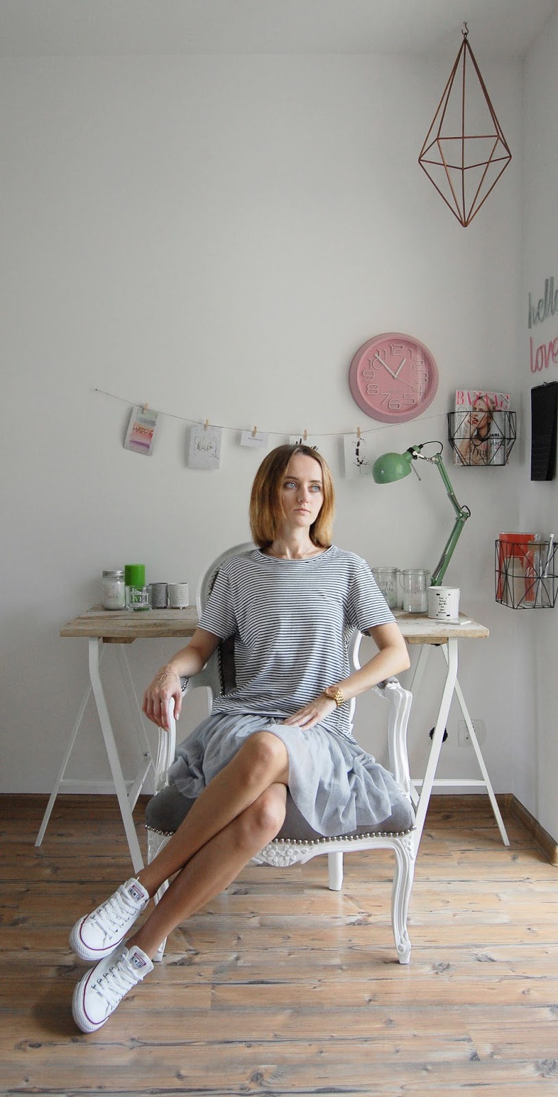 Na początku obawiałam się, że będzie zbyt niski, ponieważ na zdjęciach wyglądał na mega niziutki, ale zaryzykowałam (oczywiście wcześniej porównując jego wymiary z dotychczasowym krzesłem).