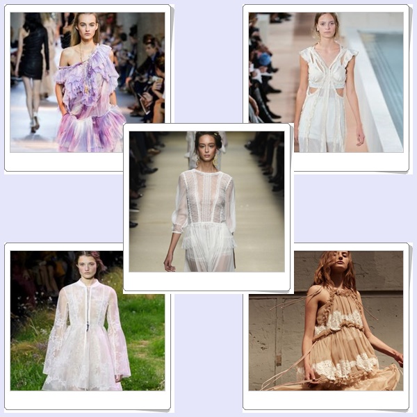 Ten trend kupił mnie w 100%. Długie, zwiewne sukienki w odcieniach bladego różu, beżu, czy błękitu. Falbany, drobne kwiaty i przezroczystości.