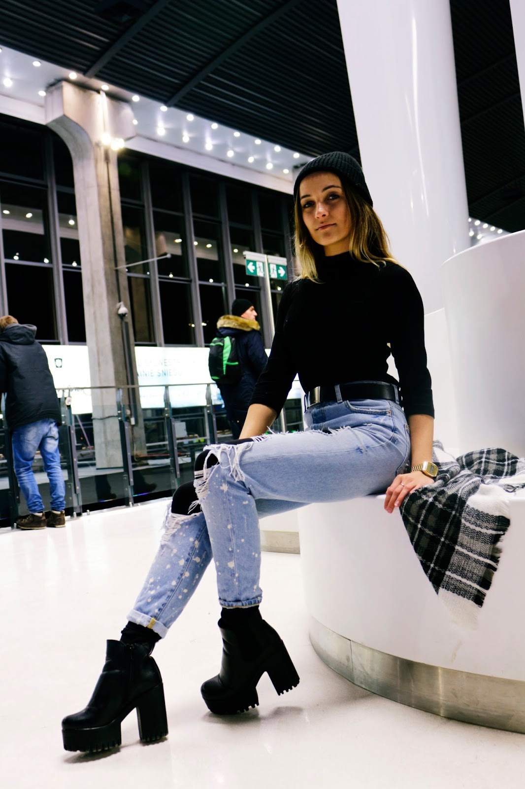 Zobacz oryginał czw., 19/01/2017 - 20:10Witajcie kochani, czy Wam też tak doskwiera zimno? Wolelibyście lato, czy raczej mimo mrozu dalej pozostajecie wierni zimie? Ja osobiście marzę o słońcu i wysokich temperaturach. Jakiś czas temu nasze termometry pokazywały -30'C, takie temperatury pamiętam ostatnio jak były 3 lata temu. Nic przyjemnego. W tym roku gdy tak było odwiedziła mnie akurat moja przyjaciółka z Rosji. W naszych planach była sesja i powiem Wam, że było ciężko więc zdecydowałyśmy się na zdjęcia w pomieszczeniu. Początkowo była to hala Dworca Centralnego w Warszawie, a potem Pałac Kultury i Nauki w Warszawie. Stylizacja jest luźna, grunge'owa i moim zdaniem wygląda świetnie, a jak Wam się podoba? Piszcie! :)