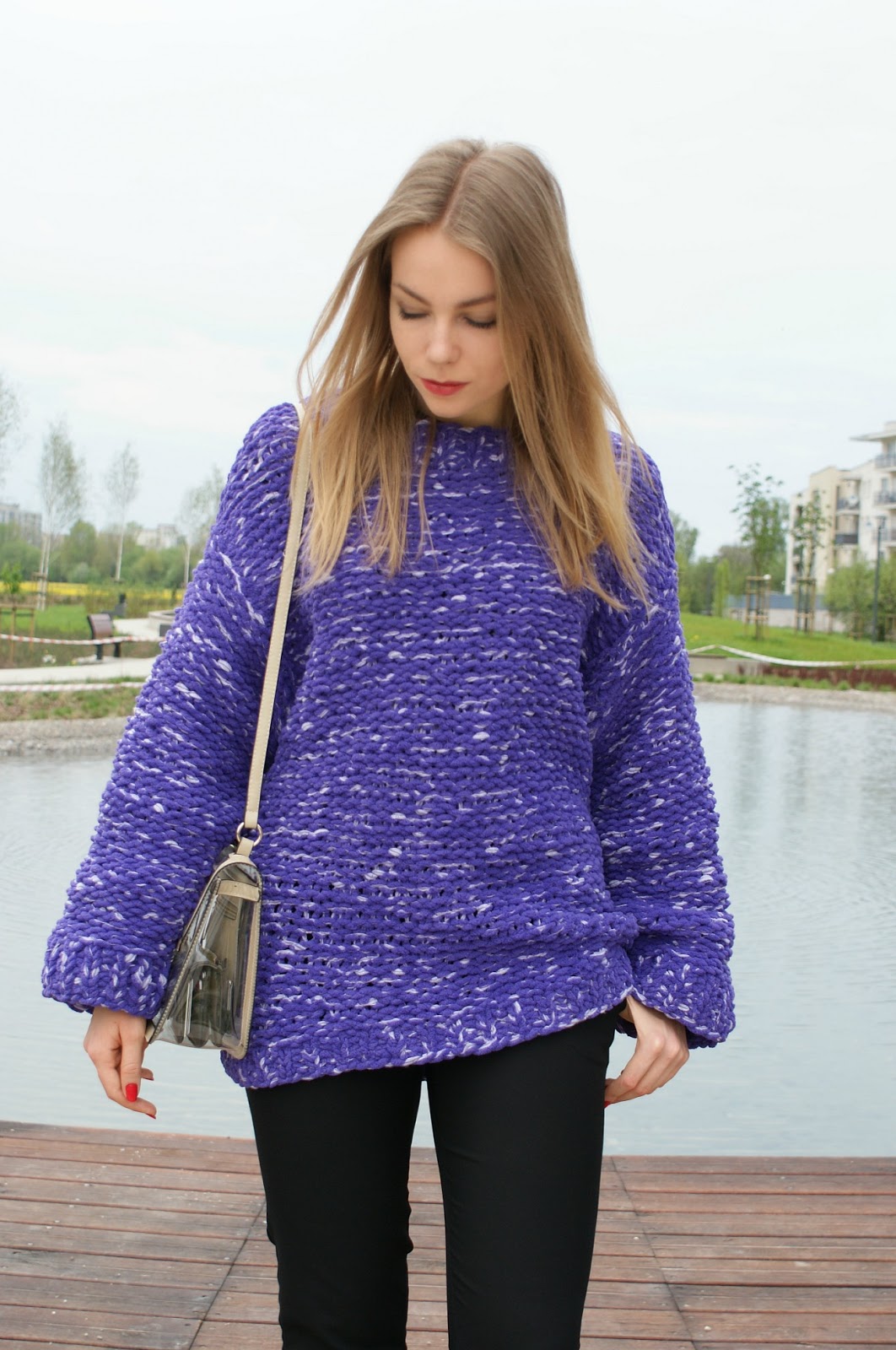 Hej! Fiolet nie jest częstym gościem na światowych wybiegach, ostatnio jednak można było go oglądać na pokazie Balmain (w którym brała udział Kendall Jenner i Karlie Kloss). W pokazie postawiono na małe akcenty w tym kolorze, a ja postanowiłam zaszaleć i wybrałam duży sweter, który przypomina krojem kimono.