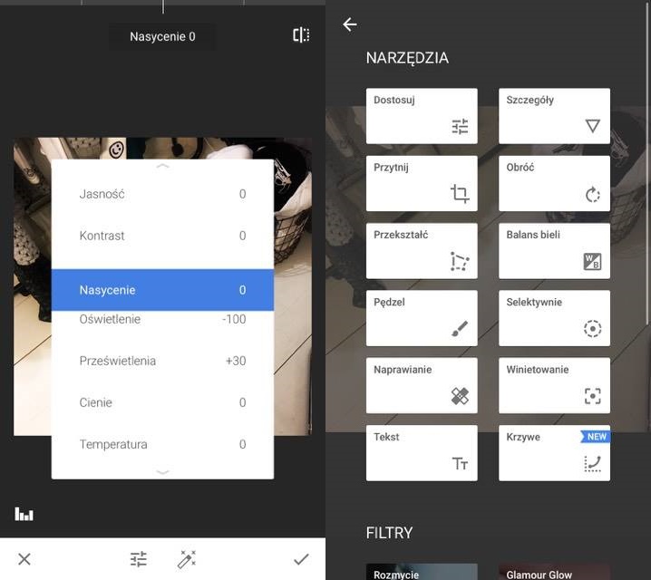 5) Snapseed ‒ wydaje mi się, że śmiało mogę porównać do mini-PhotoShopa, tylko że w telefonie. Wszelkie kontrasty, prześwietlenia, filtry znajdziecie właśnie tutaj.