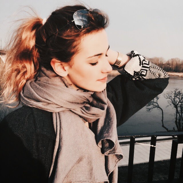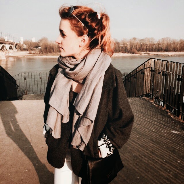 Płaszczyk - Croop / Szalik - H&M/ spodnie - second hand / buty - New Look / Sweterek - Vero Moda / Okulary - Ray Ban / Zegarek - Casio / Torebka - Stradivarius