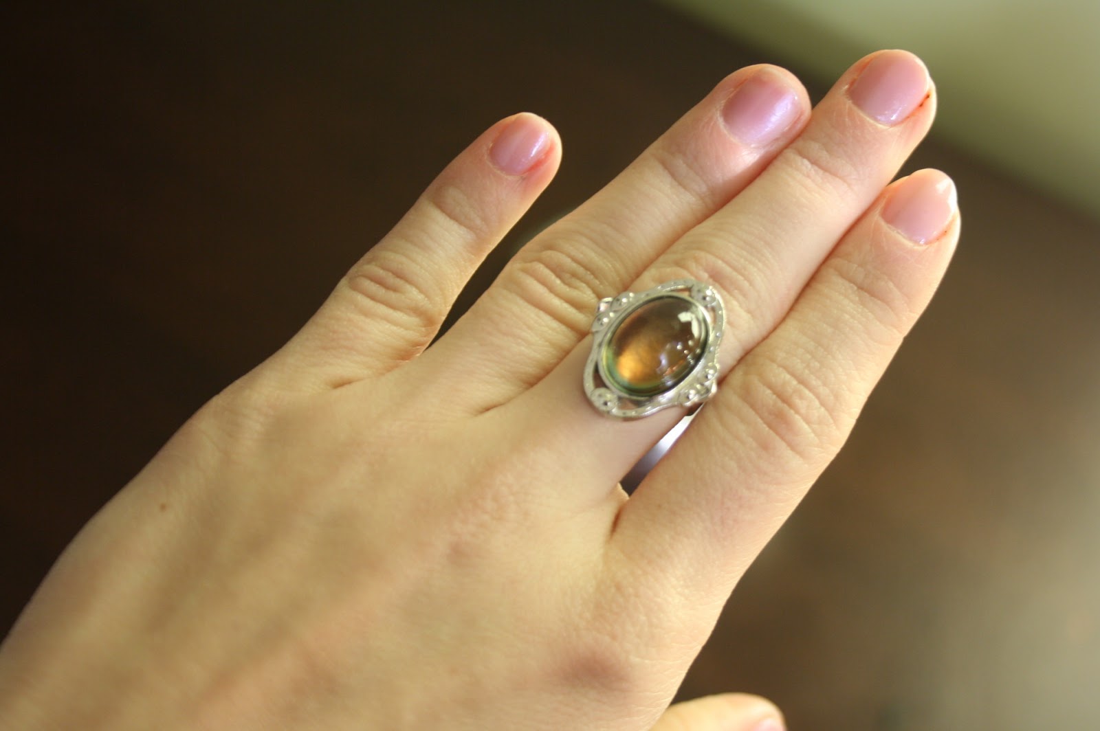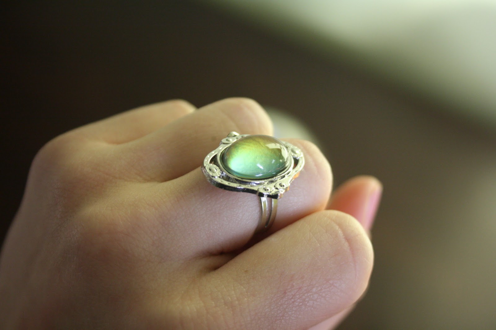 Ostatnią rzeczą w tym poście, lecz nie ostatnią z zamówienia jest przepiękny pierścionek, czy też sygnet, zmieniający kolor pod wpływem nastroju (tak naprawdę pod wpływem temperatury ciała, czy dłoni). Na stronie prezentował się naprawdę pięknie, a w rzeczywistości wykonany jest z taniego plastiku. Myślę, że nie jest to tragedia, gdyż kosztował 4 zł i nie mogłam się spodziewać wysokiej jakości wykonania. Aczkolwiek nie jest zły i generalnie bardzo mi się podoba, w szczególności gdy zmieni kolor na czarny.
