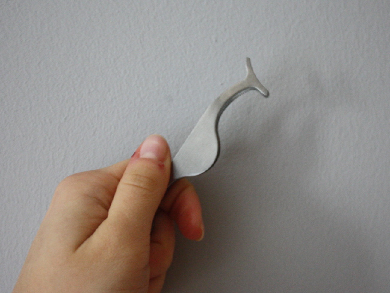 Kolejnym akcesorium kosmetycznym jest dość specyficznie wyglądająca pęseta. Można uznać ją za niezły gadżet, co przyczyniło się do skuszenia mnie do kupna. Ma służyć i znacznie upraszczać zakładanie sztucznych rzęs. Jej kształt został specjalnie do tego przystosowany: wybrzuszenie na palce oraz podłużna główka do idealnego uchwycenia rzęsy. Szczerze mówiąc, to mi nie za bardzo pomogła. Jakoś nie umiem się do tego przekonać. Może z czasem, po licznych próbach w końcu się z nią zaprzyjaźnię, choć na razie raczej utrudnia mi pracę. Może wy jesteście szczęśliwymi jej posiadaczkami ? Koniecznie napiszcie, czy jest wam przydatna ?!