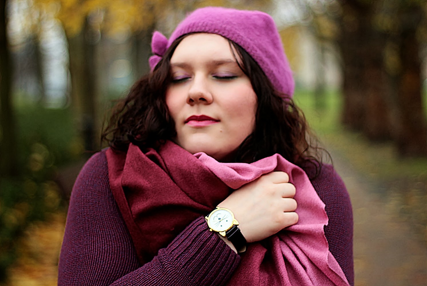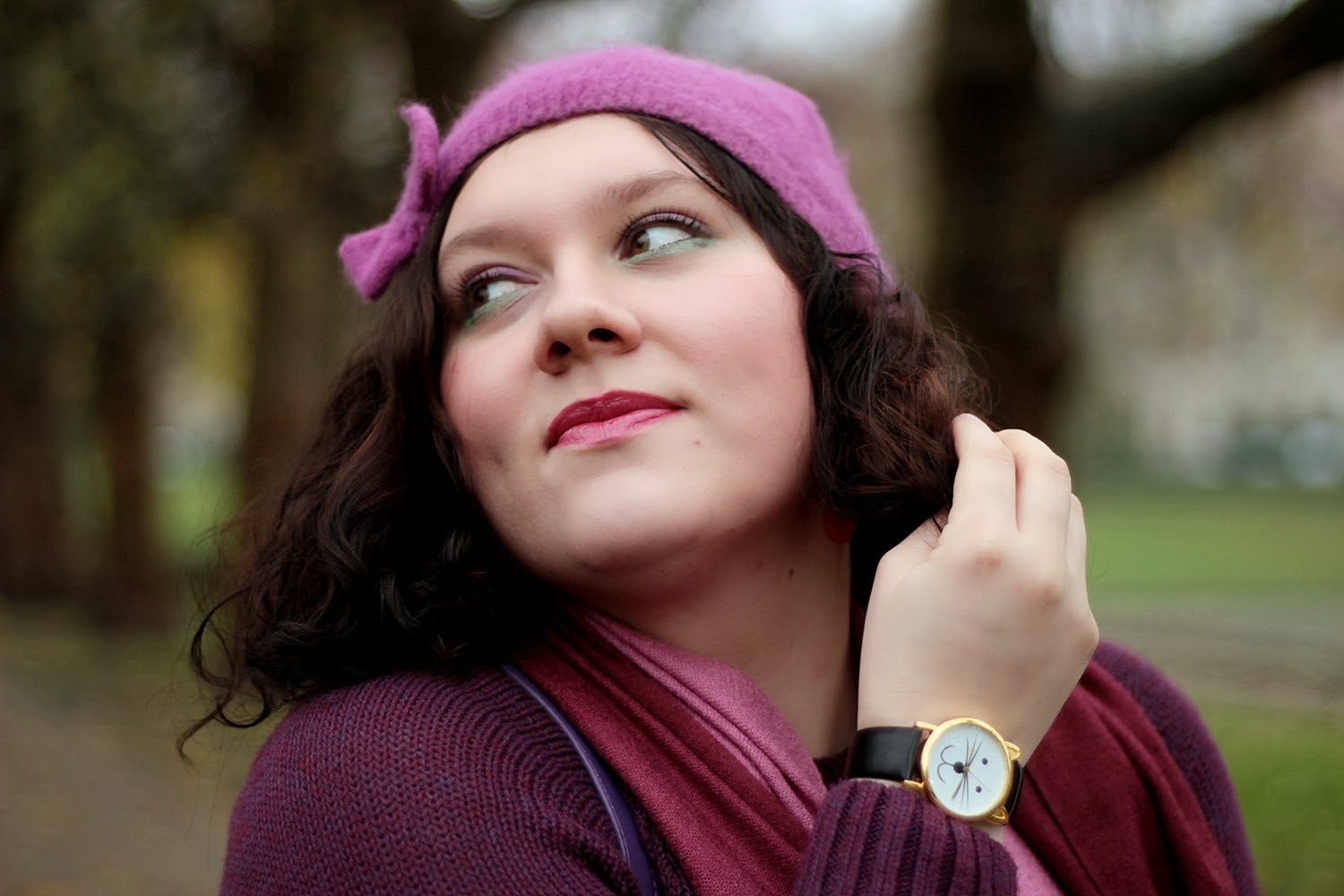 sweter/sweater - H&M, berecik/beret - H&M, naszyjnik/necklace - granashop, zegarek/watch -granashop, spódnica/skirt - atmosphere, buty/shoes - allegro, torebka/bag - fleq.