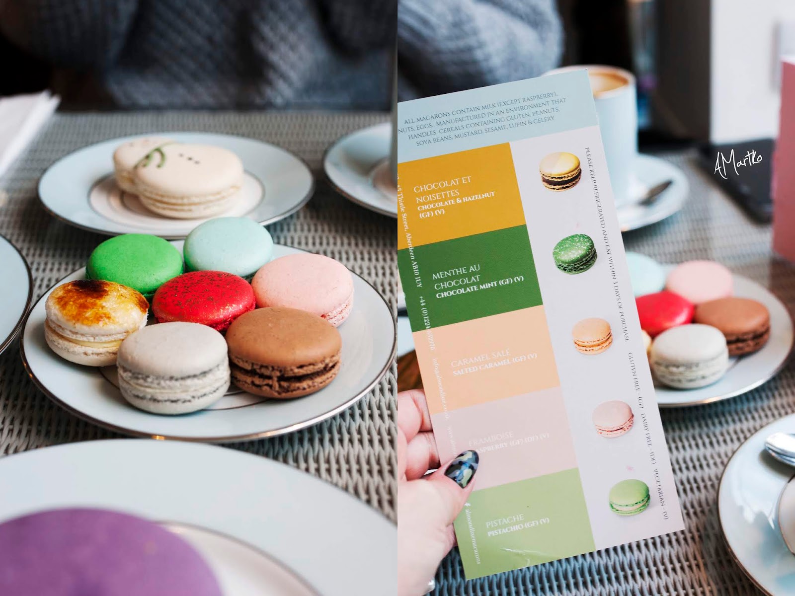 Almondine is a family-owned company that started to bake macarons for the first time in 2011. After many trips to Paris, they discovered that they could not find macarons for sale anywhere in Aberdeen... And this is true - we can find them frozen in Lidl or in Tesco, but it's nothing in comparison with products from this patisserie. After about one and a half years of research, the two sisters had their own recipes and in 2013 a patisserie was opened in Aberdeen. There should be no problem finding it when walking along Thistle Street because the windows are marked with wonderful colourful dots, inscriptions and blue frames from the windows or doors. Charming place, right?