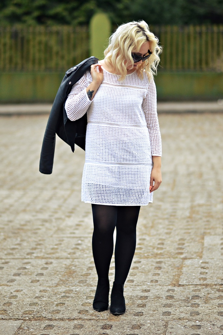 Sukienka MANGO / Ramoneska ATMOSPHERE / Botki MANGO / Okulary SINSAY