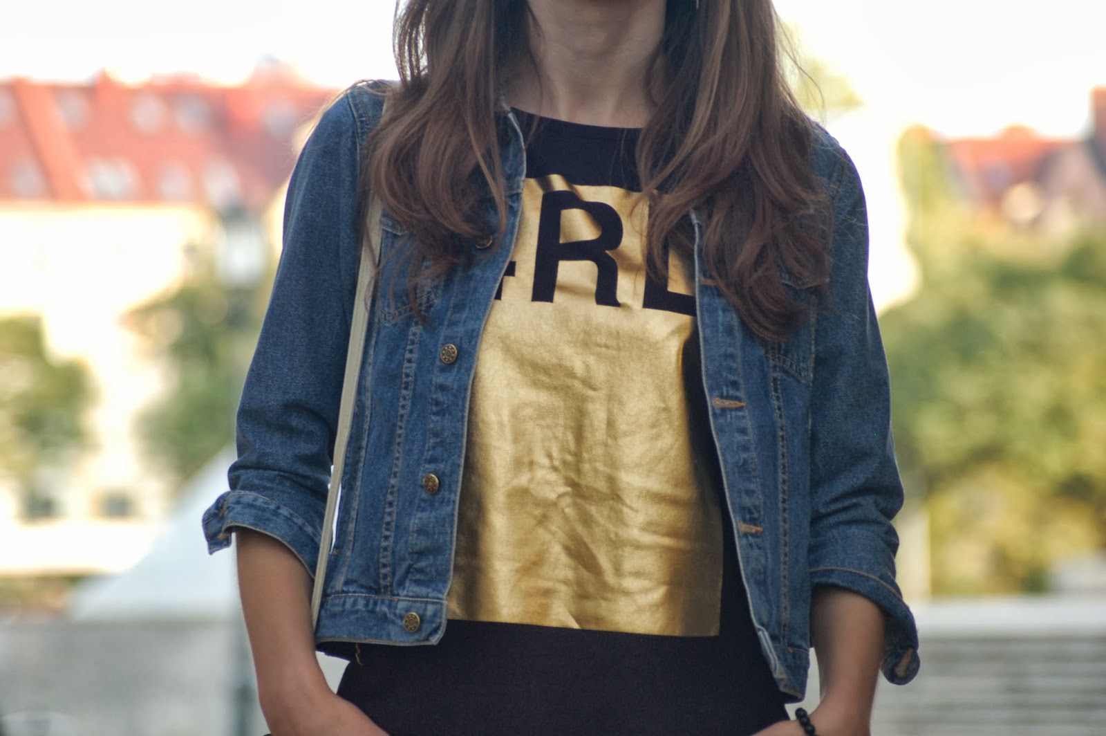 Ubrałam żółto-brązowe spodnie, czarną koszulką ze złotym printem, na nogach niezastąpione botki za 5 zł a że pogoda dopisywała to starczyła jeansowa katana na wierzch. A do tego niedawno kupiona a już ulubiona torebka Marc Chantal w stylu vintage. Całość dopełniają "zadziorne" kolczyki marki Pistil,które wyjątkowo przypadły mi do gustu. Klasyczna czarna bransoletka marki moma by MoMa. o której mogłabym pisać i pisać ale najlepiej będzie jak same obejrzycie dzieła pani Moniki. Każda z bransoletek jest ręcznie robiona i indywidualnie dobierana wg naszego pomysłu.