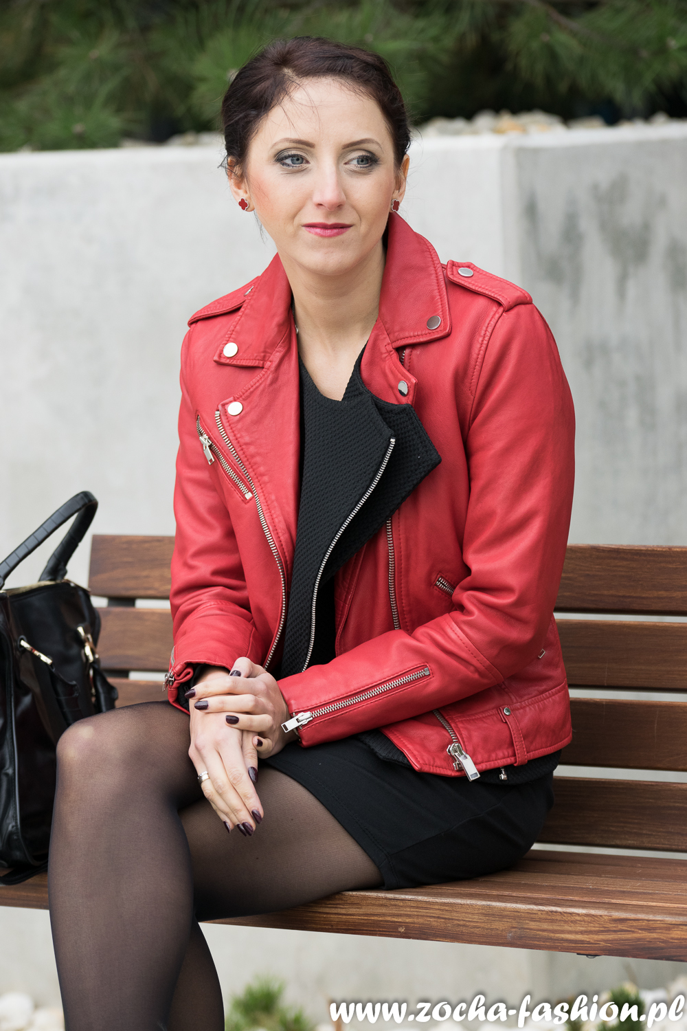 Kolejnym elementem garderoby, który powinna posiadać każda babeczka jest ponadczasowa skórzana ramoneska. Moja, czerwony pazur to prezent na 33 urodziny. Upominek trafiony w 100%. Elegancji rockowej ramonesce nadałam dzięki założeniu pod nią czarnej marynarki z ciekawie skrojonymi klapami wykończonymi ekspresami.