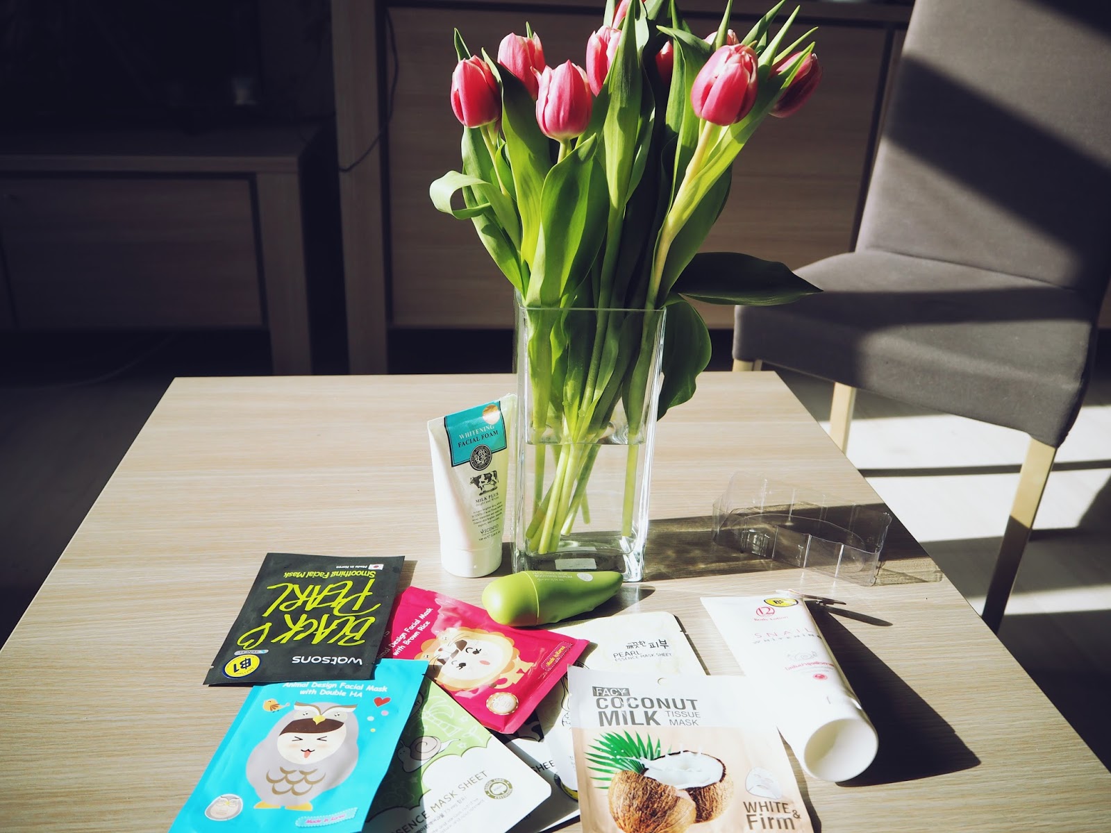 Kupiłam chyba zapas na kilka miesięcy, plus dla najbliższych mi kobitek. Maseczki kokosowe, w kształcie zwierzątek, z wyciągiem ze ślimaka, mleczne. Wszystko czego dusza zapragnie.