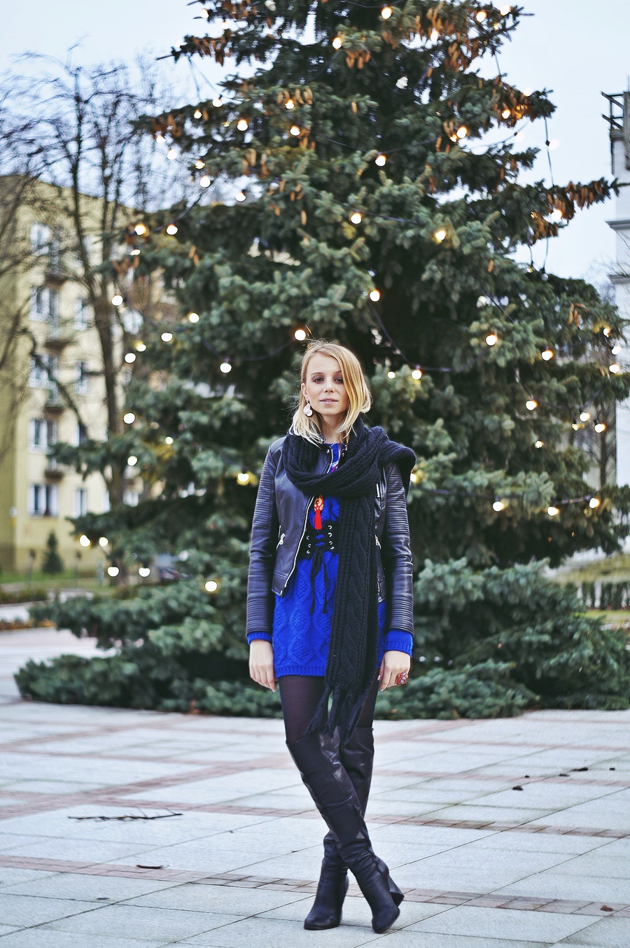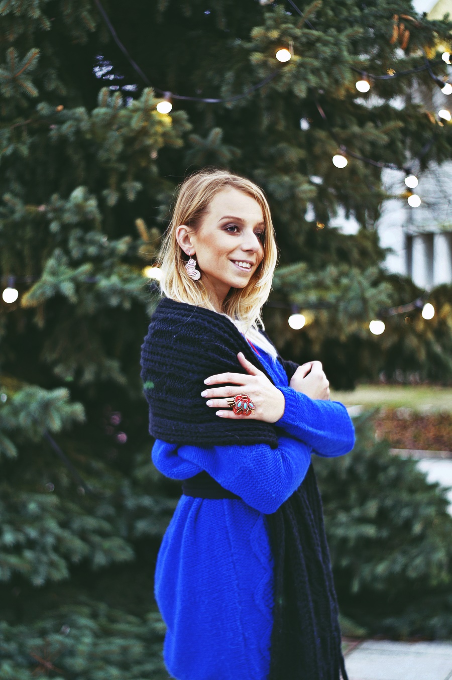 Wielki chabrowe "coś" to sweter, z którego zrobiłam sukienkę. Wiecie, że w mojej szafie często występują rzeczy oversize. Dlatego nie mogło zabraknąć swetra w rozmiarze L, który zachwycił mnie swoim kolorem i fasonem.