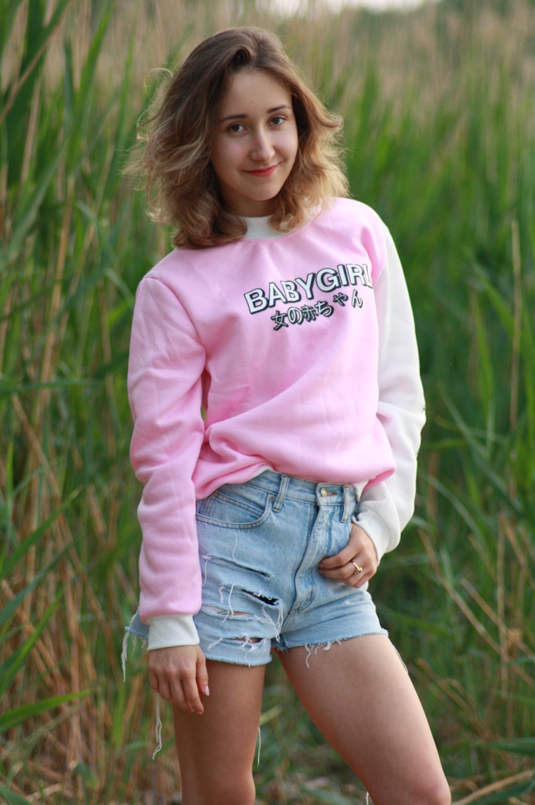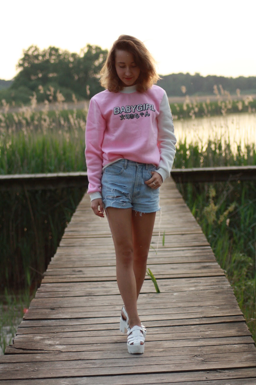 Sesja, której autorką jest Karina, została wykonana na działce, kiedy to słońce postanowiło już powoli zacząć chować się za horyzont. Pogoda nie była zbyt ciepła, ale w sweterku, który kupiłam na stronie Aliexpress.com było mi idealnie. Jego zakup był moim wielkim marzeniem, bo strasznie mi się podoba. Jest przesłodki ! Szorty wykonałam sama ze starych dzwonów mojej mamy. Nacięłam dziury oraz poszarpałam nogawki nożyczkami. Buty, och .... te buty. Kolejne moje dziwne marzenie o "ortopedycznych" sandałkach zostało spełnione. Kocham je, po prostu ... są cudowne !