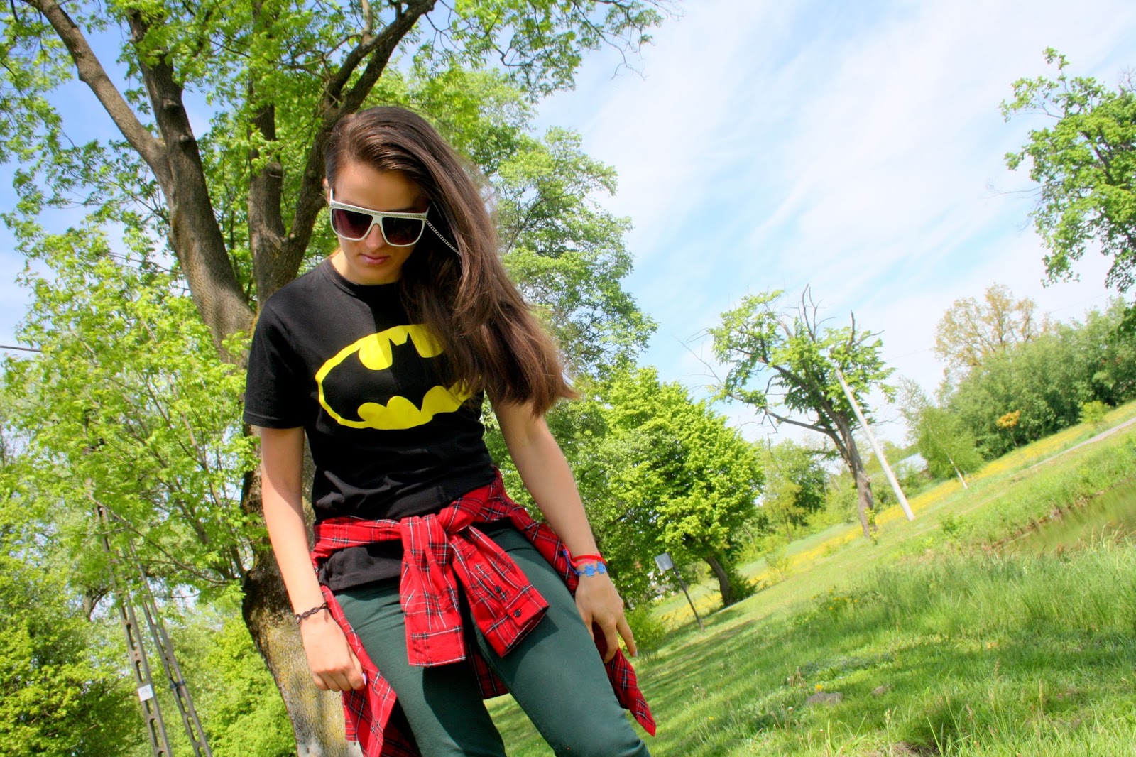 Zobacz oryginał sob., 06/06/2015 - 21:23Hi!Dzisiaj prezentuję Wam codzienną,luźną stylizację.Jeansy,t-shirt i koszula.To połączenie nigdy nie zawodzi.Koszulka z oryginalnym znakiem batmana i spodnie to łup z (s-h).Główną rolę dzisiejszego zestawu odgrywają okulary z łańcuszkiem. Okulary przeciwsłoneczne zagoszczą u mnie na dłuższej.Nowością w stylizacji są także dodatki.Bardzo lubię neonowe,kolorowe bransoletki,które świetnie uzupełniają letni look.Zapraszam do oglądania!