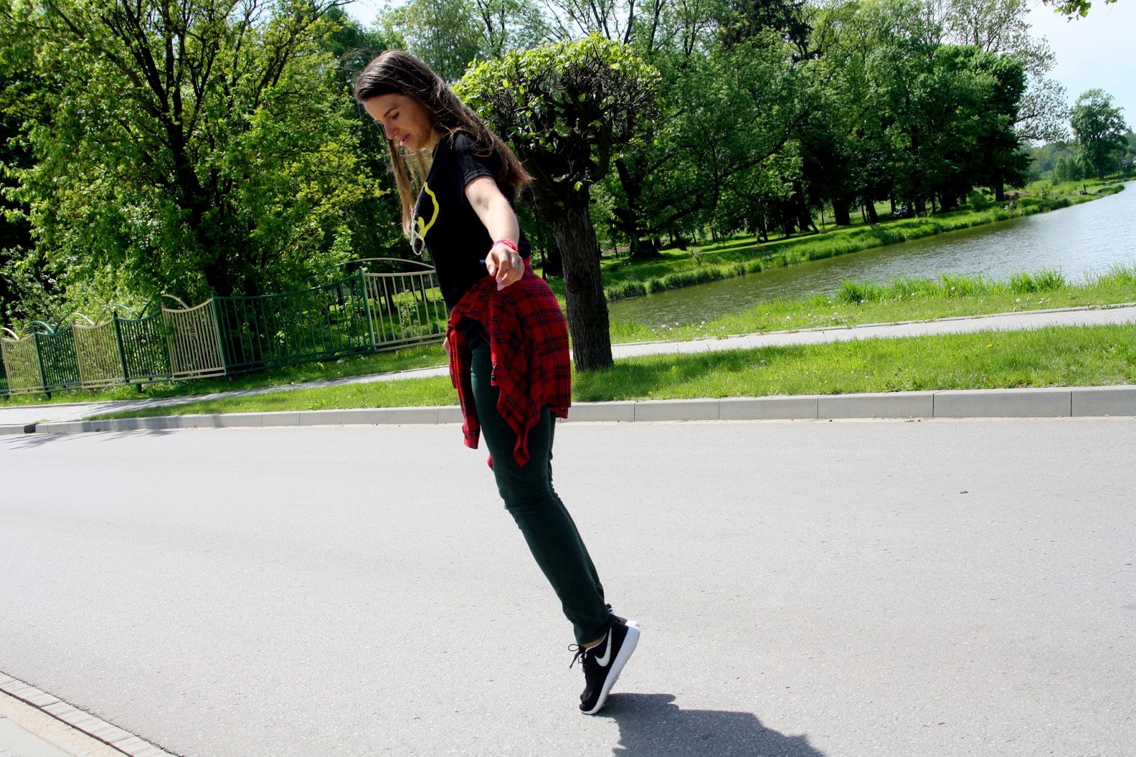 spodnie-river island, t-shirt-batman, buty-nike, koszula-Pepco, okulary-Dodateria, bransoletki-Missiu