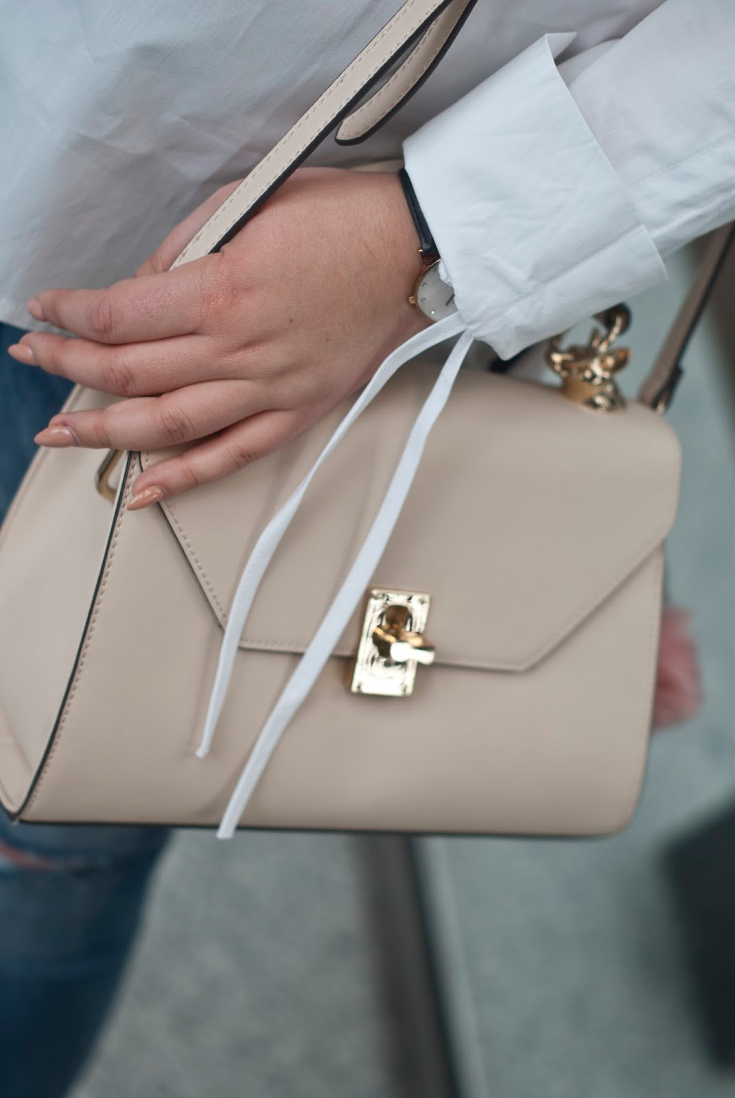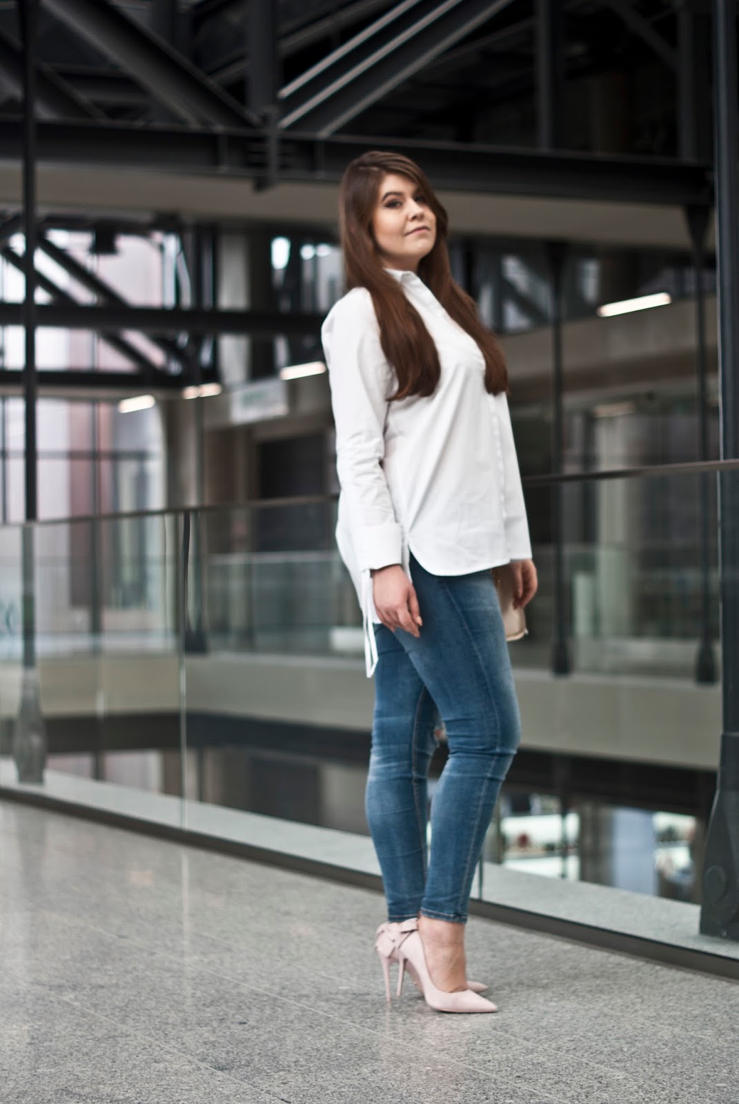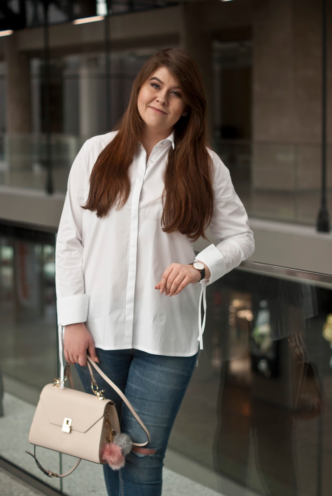 Zobacz oryginał ndz., 26/11/2017 - 07:00Witajcie Czytelnicy! Dziś przygotowałam dla Was stylizację, która sprawdzi się jako codzienne ootd. Biała klasyczna koszula, niebieskie jeansy, buty na lekkim obcasie i pasująca do tego torebka to strzał w dziesiątkę! Każda kobieta powinna mieć w szafie koszule. To jest totalny klasyk. Ja moją szafę uzupełniłam ostatnio w trzy nowe koszulę i dziś przedstawię Wam stylizację pierwszą.