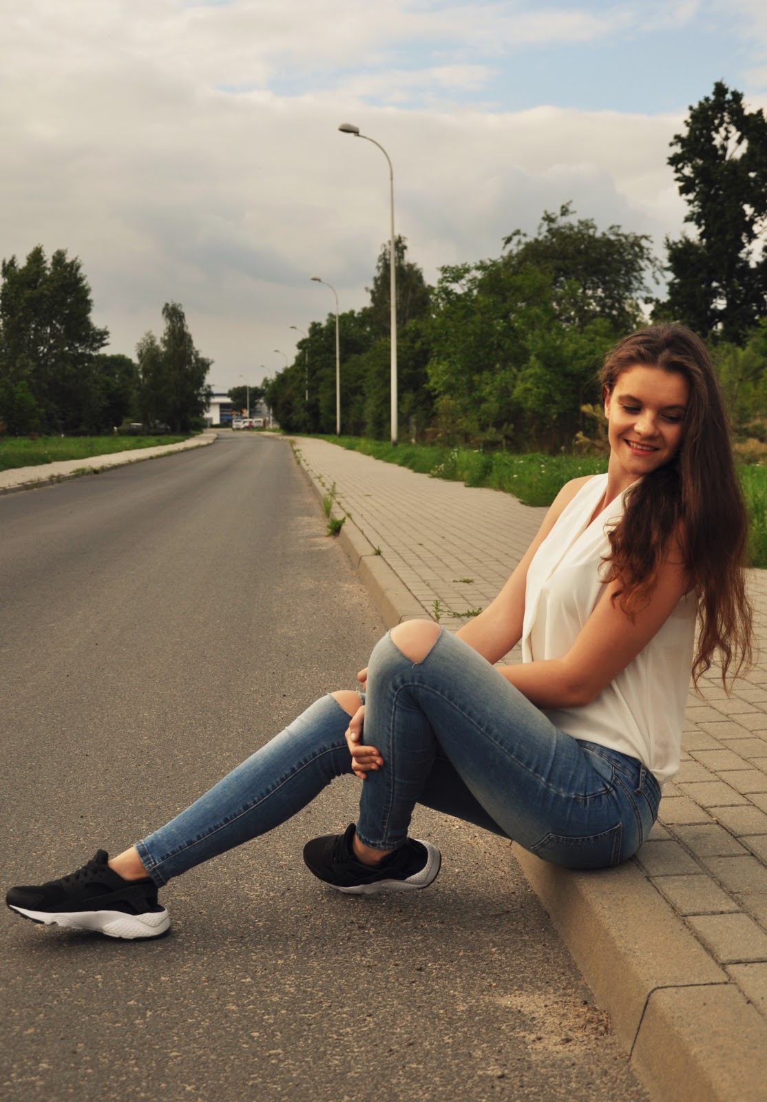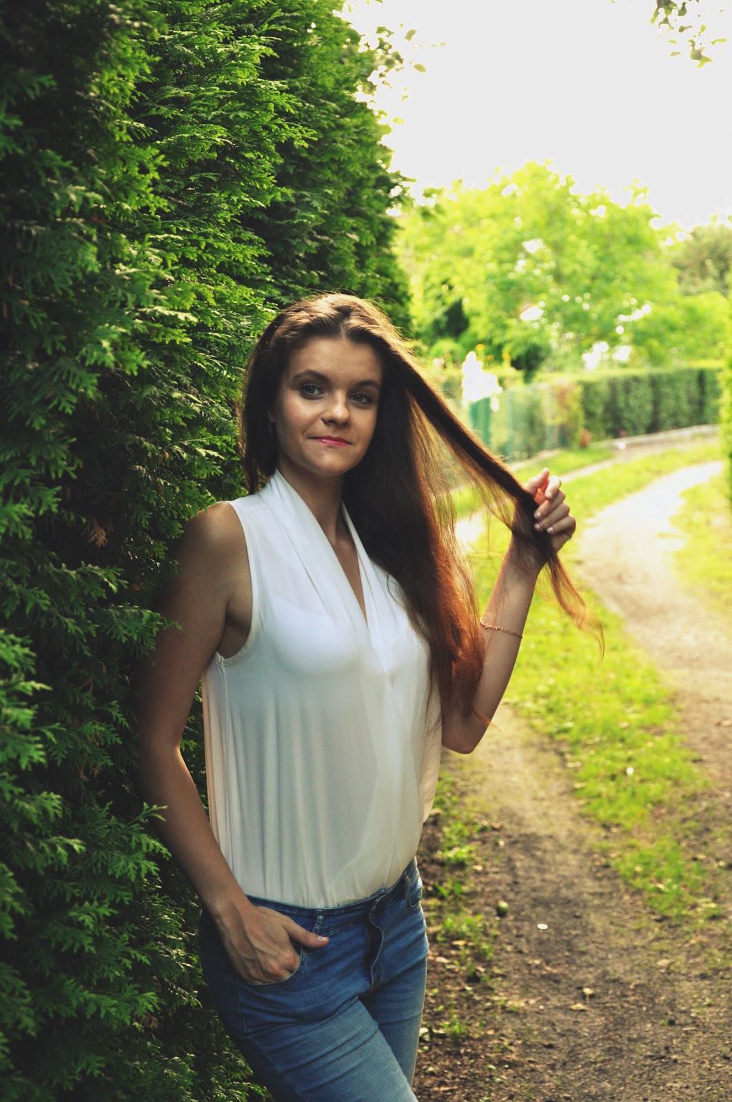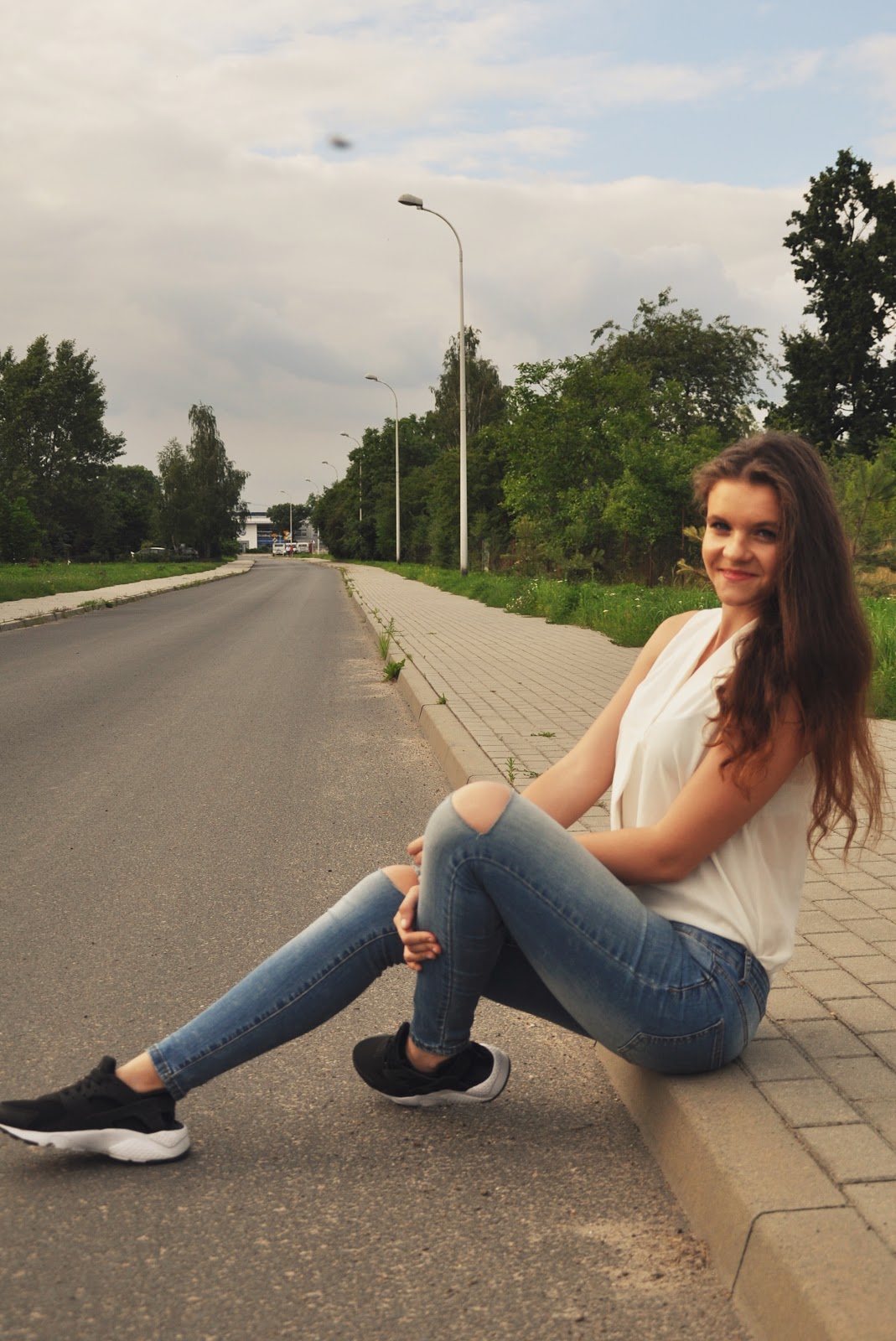 W weekendzior udało mi się zrobić kilka fotek, choć miałam chwilę zwątpienia czy w ogóle one wyjdą. Mam nadzieje że pogoda niedługo będzie lepsza, bo nie wiem jak u was ale u mnie jest chłodno i często pada :/ A mamy lipiec, więc gdzie te letnie temperatury ? Stylizacja jest prosta, biała bluzeczka do jeansów z dziurami na kolanach. Co do bluzki, często muszę się poprawiać, ma bardzo głęboki dekolt (choć na zdjęciach nie widać tego) i się zsuwa. Jeansy kupiłam w sinsay, nigdzie indziej nie mogłam podobnych zdobyć. Do tego przepasałam sobie w pasie koszulę w kratę, którą widać na paru zdjęciach :P Do tej stylizacji każdy może dobrać coś wyjątkowego aby nadać jej pazura. Muszę zaopatrzyć się w jakąś bomber jacket w fajnym kolorze :) Idealnie by przypasowała się do reszty zamiast koszuli w kratę :)