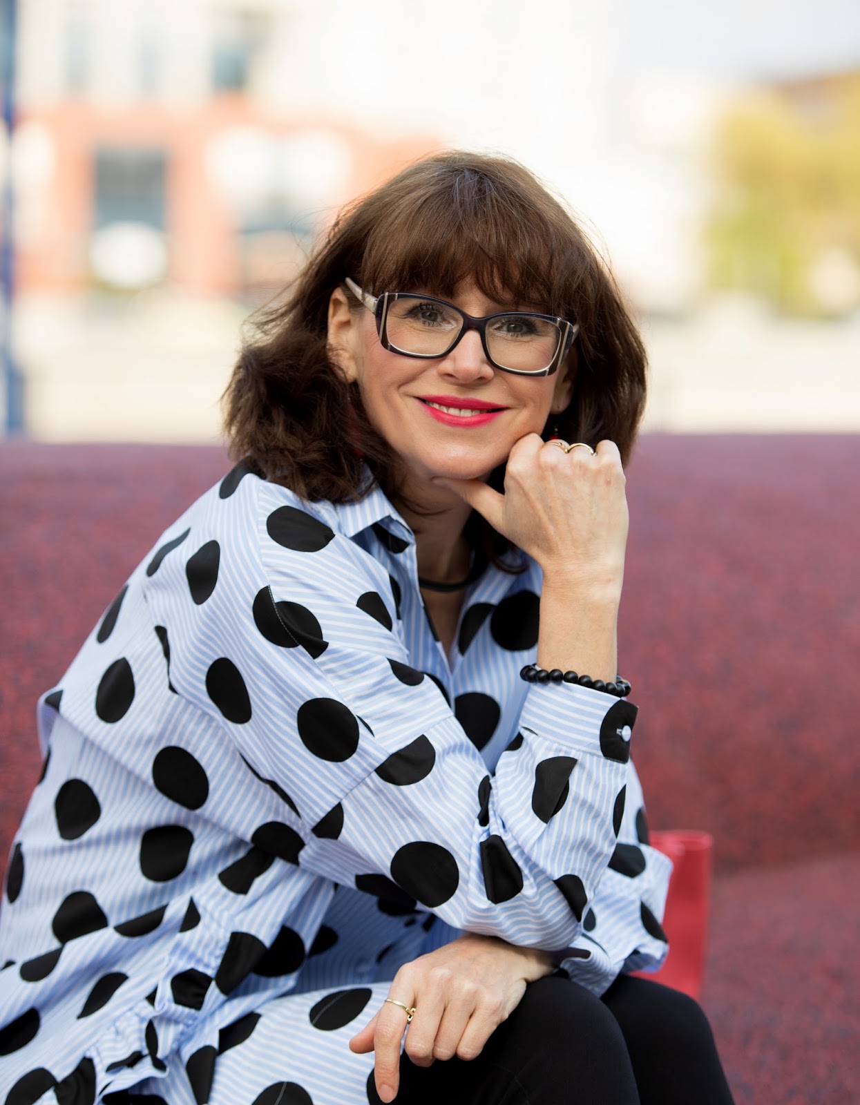 Stylizacja: to koszula w duże, czarne grochy jest tutaj "gwiazdą programu" ;) Ma wszystko czego zapragniesz: grochy, paski, falbanki, jest obszerna i ... błękitna! Na punkcie błękitnych koszul mam hopla, co wejdę do sklepu to zaraz przyciągają mnie jak magnez. i to "błękit" w rożnych wariacjach: gładki, w paski, kropki, kratkę ... i co tam jeszcze, wszystkie mnie hipnotyzują i mówią: kup mnie, kup ;D Czasem dam się oprzeć ale tej nie mogłam :)