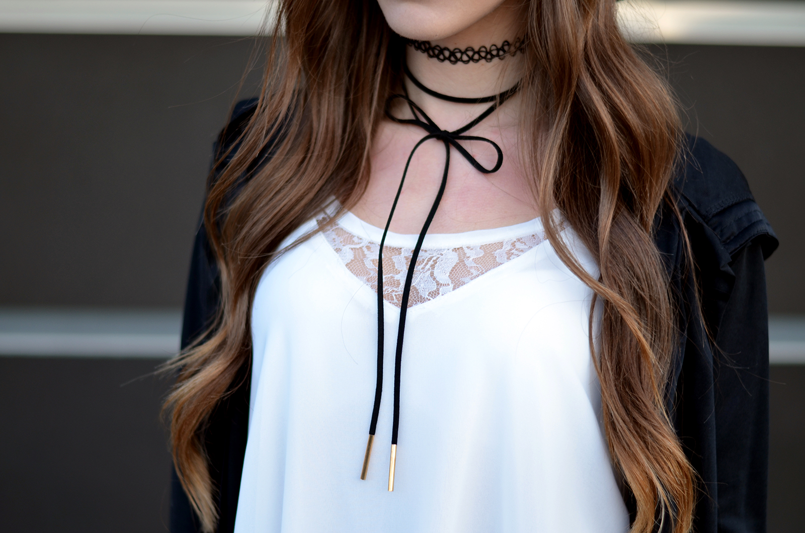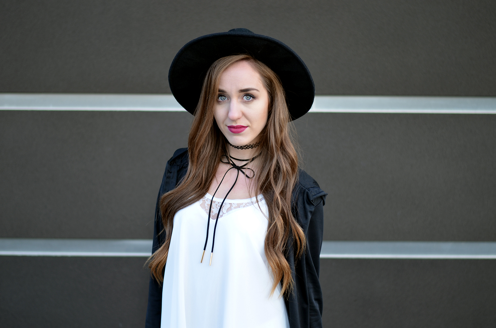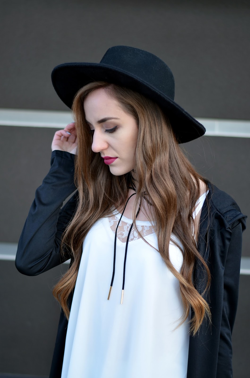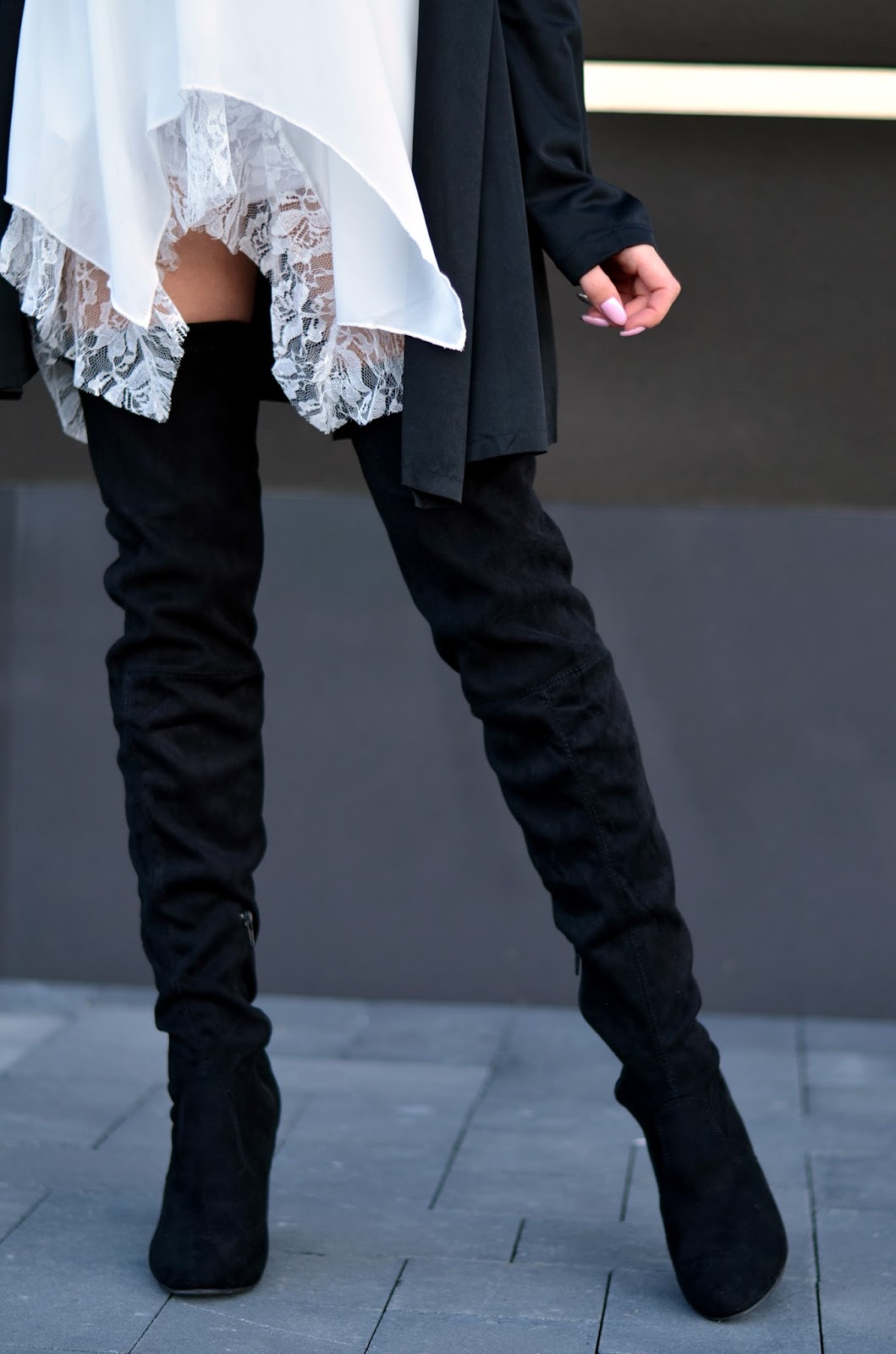 Witajcie:) Jak Wam minął weekend? Mój bardzo pracowicie, pogoda dopisała i przy okazji udało mi się zrobić mnóstwo zdjęć:) Czarno-białe zestawy chyba nigdy mi się nie znudzą. Moja szafa jest w tym momencie głównie czarno-biało-szaro-różowa, ale na szczęście pojawiają się w niej powoli elementy bordowe i beżowe. W dzisiejszym zestawie połączyłam zwiewną sukienkę z koronką do wysokich czarnych kozaków, dobrałam kapelusz oraz najmodniejszy naszyjnik w tym sezonie choker (a tak właściwe to dwa;) Drobne złote elementy przy kozakach czy torebce uzupełniają fajnie całość. Pod tego typu asymetryczne sukienki warto założyć białe szorty - jest dużo bezpieczniej i troszkę cieplej (oj nie mogę sobie wyobrazić jak będzie coraz chłodniej). Kochani zbliża się Halloween - fajne ciuszki i ciekawe przebrania znajdziecie TUTAJ. Zapraszam Was również na instagram tutaj oraz snapchat balaczka ;*