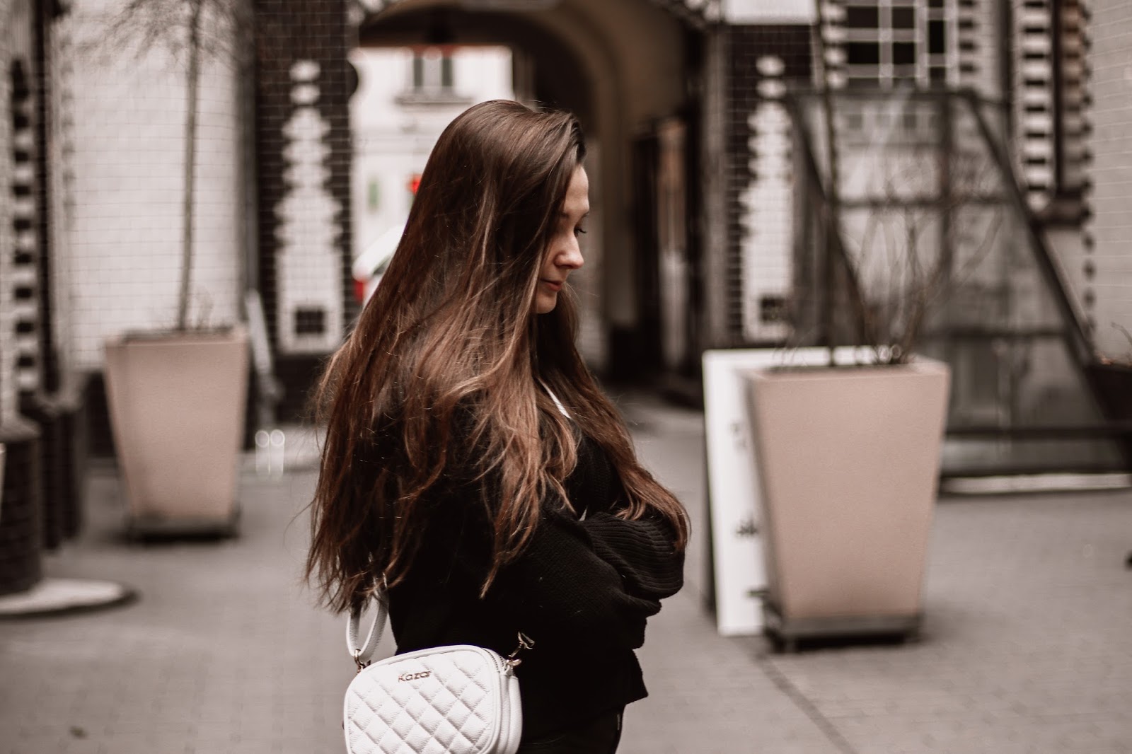 Jeśli chodzi o dodatki, czyli torebkę i buty - postawiłam na biel! Ostatnio w ogóle zorientowałam się, że stałam się zakupoholiczką jeśli chodzi o te dwie rzeczy. Zaczęłam kupować buty i torebki w najróżniejszych kolorach i o dziwo decyduję się też na te mniejsze torebki (gdzie ja od 3 lat nosiłam jedną dużą shopper bag, w której było dosłownie W S Z Y S T K O, łącznie z 1,5 litrową butelką wody :p). W tej małej torebeczce Sonia od KAZAR jestem zakochana. Nie wkładam do niej stu zbędnych rzeczy, przez co o wiele przyjemniej mi się spaceruje :p Poza tym jest wykonana z mega miękkiej i przyjemnej w dotyku skóry. Idealnie rozjaśnia moje stylizacje, a do jeansów wygląda G E N I A L N I E ! (już niedługo Wam pokażę!).