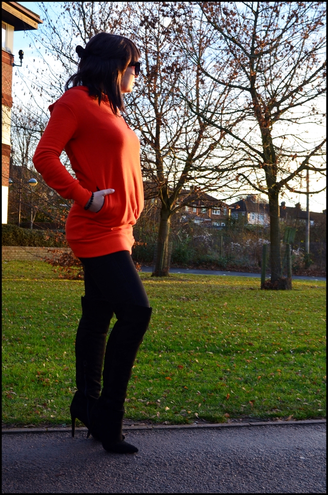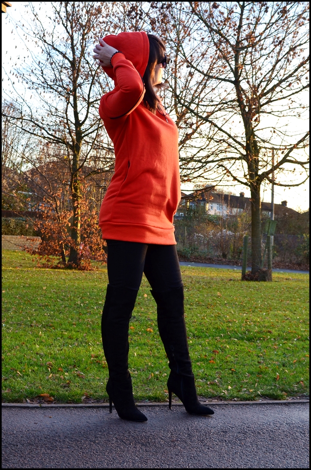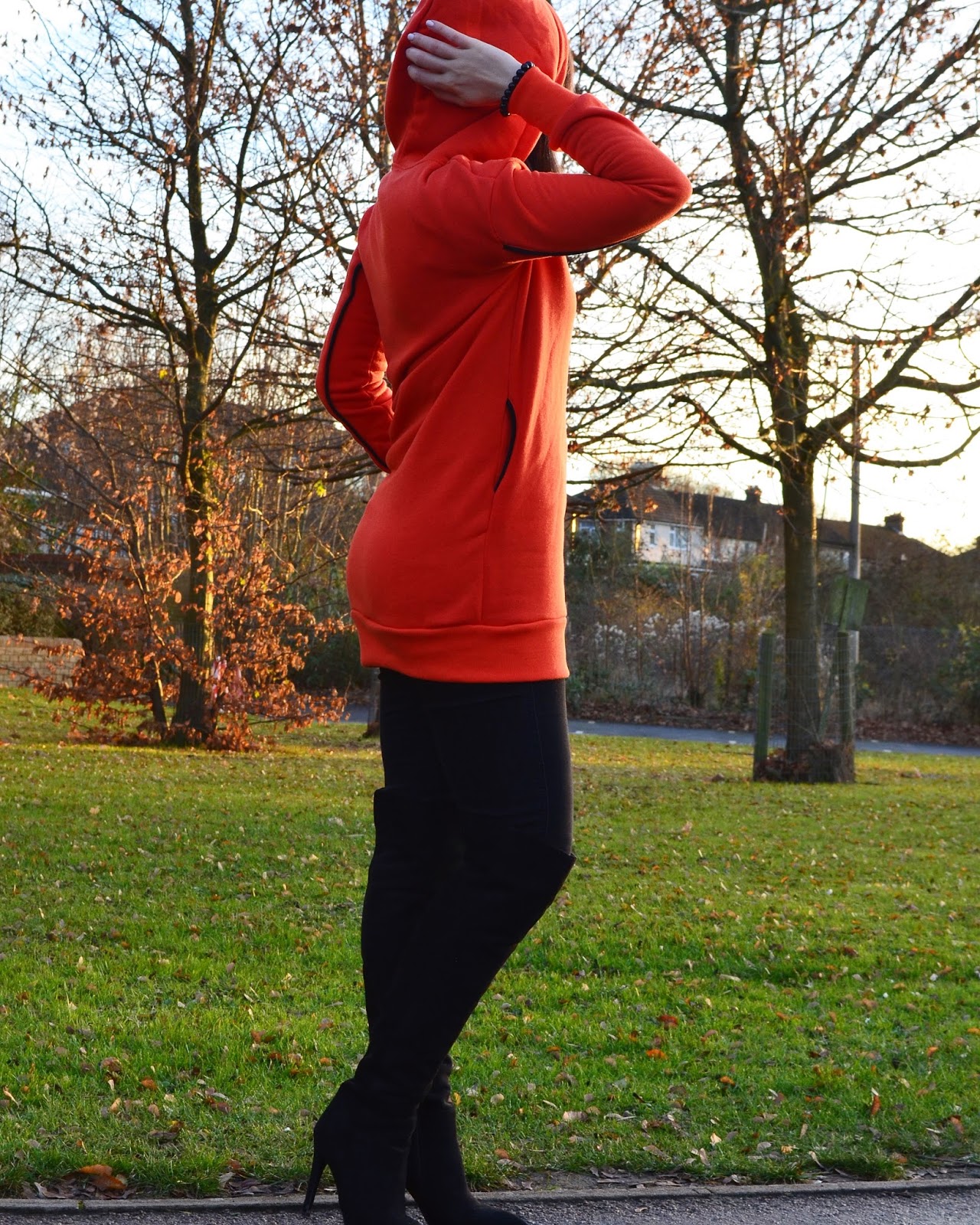 W poprzednim wpisie pewnie zauważyliście wystający spod beżowego trencza pomarańczowy kolor bluzy z kapturem? Dziś pokażę ją Wam w całości.