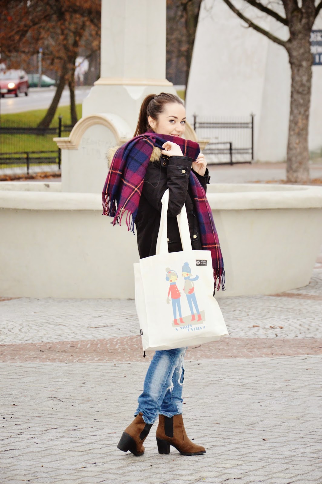 Parka- Bershka / Sweater- H&M / Jeans- ICHI / Scarf- Sinsay / Bag - Pewex / Shoes- H&M