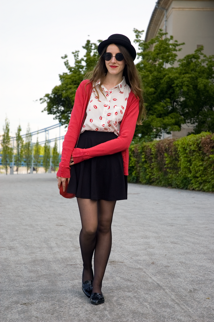 Sweter, listonoszka i melonik | Cardigan, satchel & bowler: SH / Koszula | Shirt: tutaj / Mokasynki | Moccasins: Deezee / Zegarek | Watch: Ecarla / Okulary | Sunglasses: Dresslink.