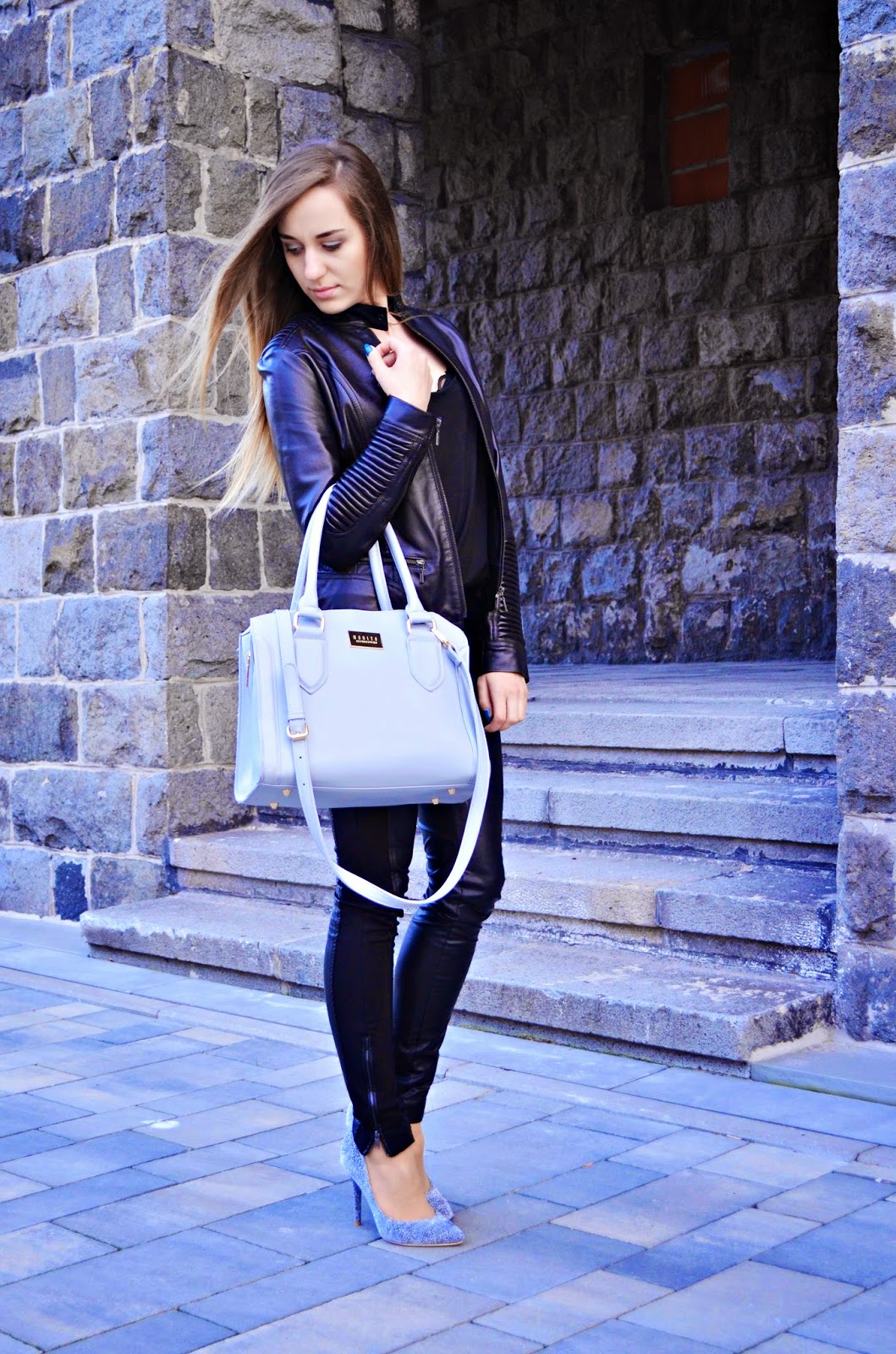Zobacz oryginał czw., 06/11/2014 - 19:40Witajcie, przybywam z nowościami:) kolejny czarny zestaw, tym razem z dodatkiem srebra i szarości. Ten post miał ukazać się w przyszłym tygodniu, jednak niestety moja noga oraz przeziębienie uniemożliwiły mi zrobienia nowych nieco bardziej kolorowych zdjęć, które miałam w planach. Spodnie z Mohito to mój must have tej jesieni, są ciepłe, a zarazem pasują do wielu rzeczy w mojej szafie. A torebka jest rewelacyjna i mieliście okazję oglądać ją już na moim blogu w całkiem innych wydaniach. Mam nadzieję, że i ten prosty zestaw Wam się spodoba:) oczywiście zapraszam również na fanpage tutaj oraz instagram tutaj :)