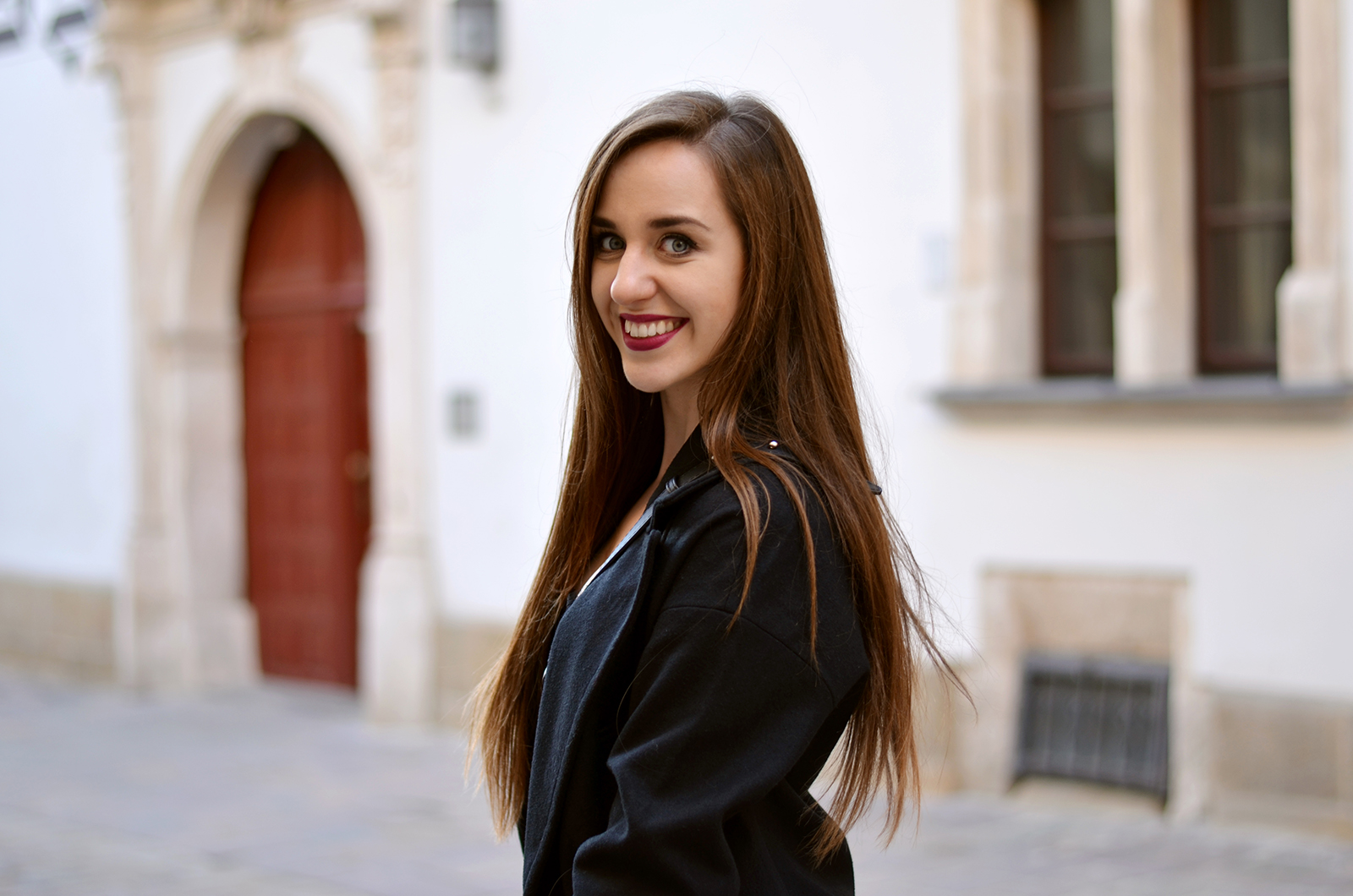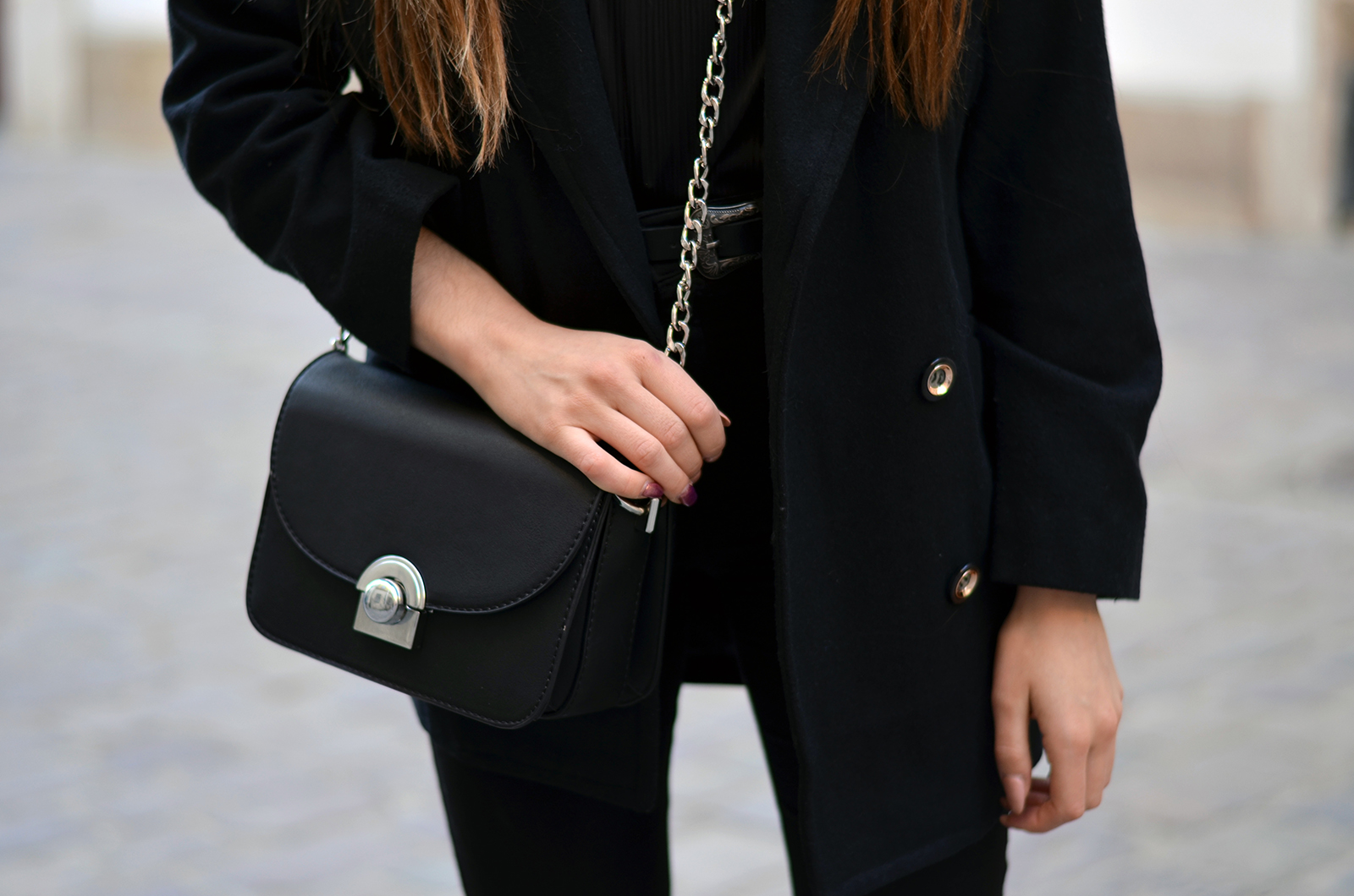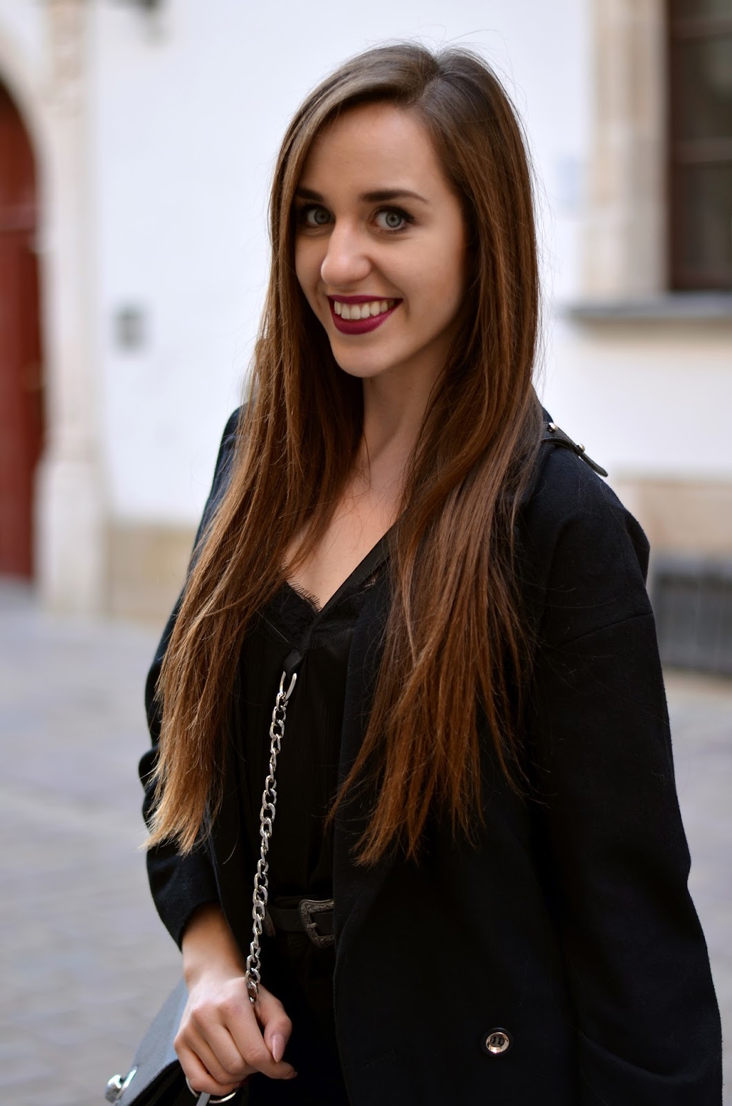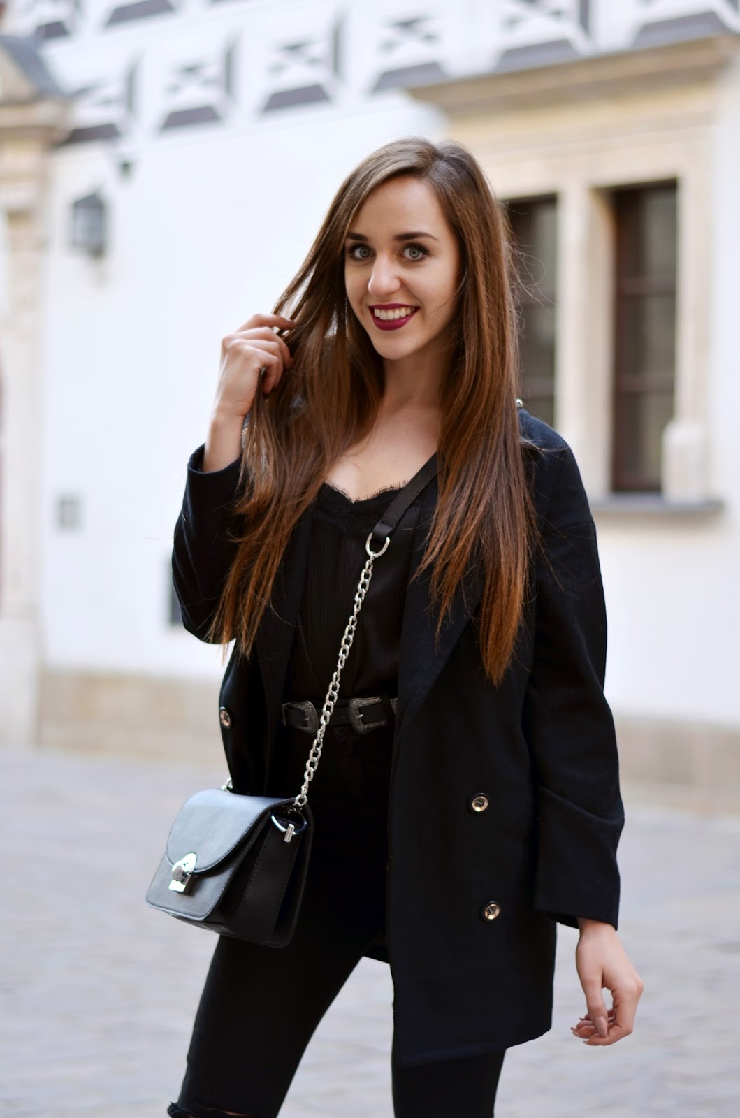 Zobacz oryginał czw., 16/03/2017 - 20:00Witajcie:) Trzecia sesja z Krakowa oraz mój kolejny black total look. Który to już z kolei? A postarałam się znaleźć moje wszystkie czarne zestawy i wyszło tego sporo. Jest to jeden z moich ulubionych kolorów i oczywiście jeden z bezpieczniejszych, w którym prawie zawsze czuje się dobrze (jedynie latem wolę dużo bardziej jasne kolory). Delikatną bluzkę ala bieliźnianą z koronką zestawiłam z modnymi spodniami z dziurami, a na to zarzuciłam ulubiony płaszcz i dodatki. Idealny zestaw na wieczorne wyjście. W wersji luźniejszej fajnie wygląda również z Adidasami Superstar (sprawdziłam Krakowski rynek zdecydowanie nie nadaje się do tego rodzaju butów, dlatego ja na wyjście wybrałam jednak opcję wygodną). Jeśli chcecie na bieżąco wiedzieć co u mnie zaglądajcie na instagram @balaczka. A poniżej podałam Wam linki do innych zestawów;)