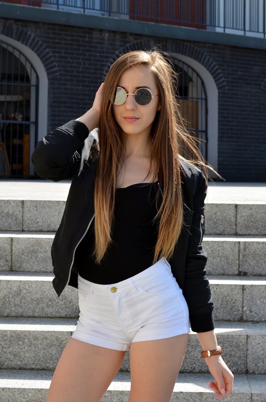 Zobacz oryginał pt., 22/04/2016 - 21:00Witajcie:) Dzisiaj tak naprawdę korzystając z pogody po raz pierwszy założyłam szorty i nie zmarzłam. Marzy mi się już lato i słońce, które towarzyszyło Nam dzisiaj;) Mam ochotę takie zestawy zakładać codziennie, niestety pewnie jeszcze chwilkę trzeba poczekać. Wracam do częstszego wkładania zdjęć, pojawi się bardzo dużo nowości. Bomberka ze Stradivariusa, to zdecydowanie mój ostatni hit, wygodna pasująca do prawie wszystkiego. Wersję różową mogliście niedawno oglądać na moim blogu, jednak skusiłam się również na moją ukochaną czerń. Zachwycona jestem również szpilkami, są nie tylko atrakcyjne wizualnie, ale również niesamowicie wygodne:) Dawajcie znać co myślicie.