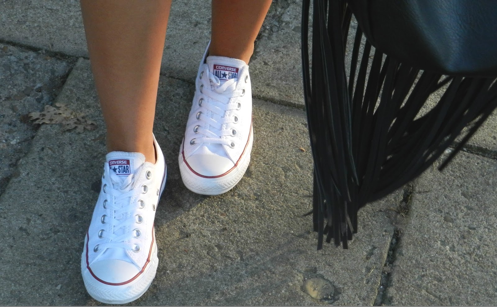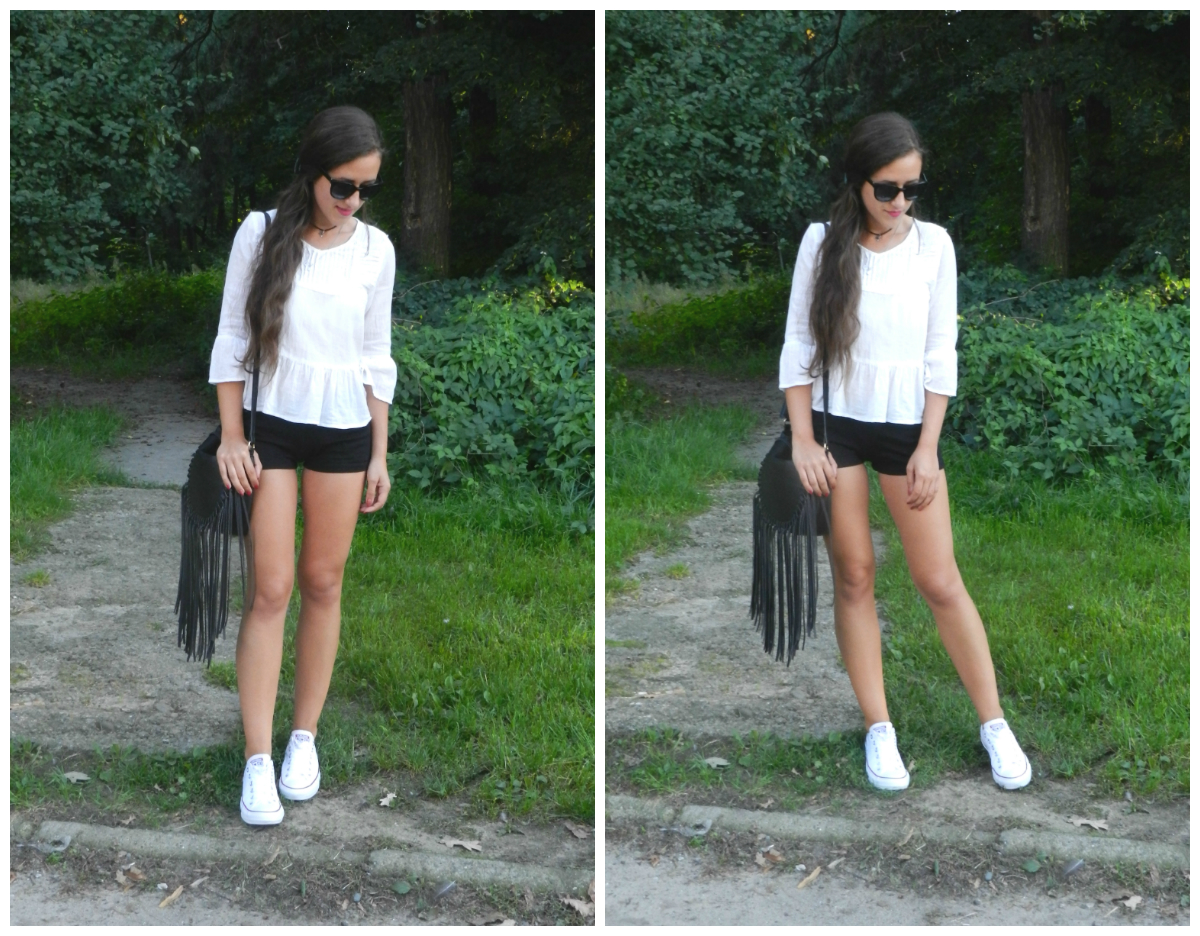 BLUZKA BOHO, CONVERSE I TOREBKA Z FRĘDZLAMI