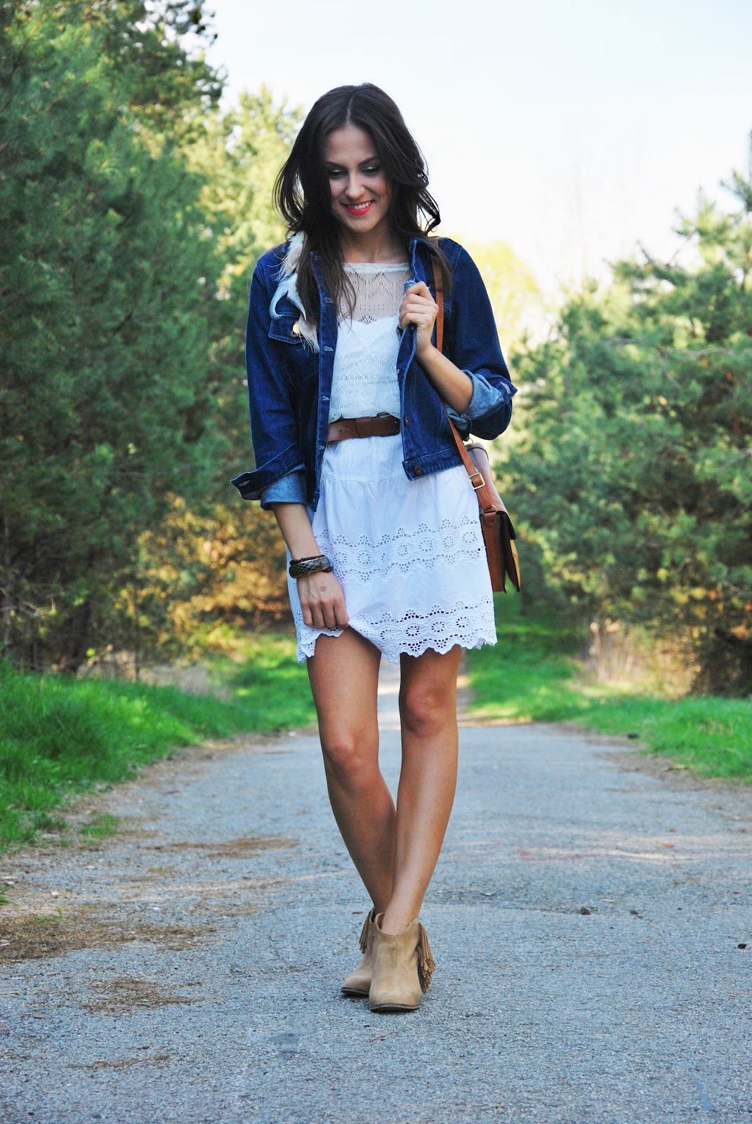 Zobacz oryginał pon., 30/04/2012 - 15:11Wiecie nie od dziś, że uwielbiam styl boho. Sukienki maxi, pióra, frędzle, luźny i trochę niedbały look. Tym razem zainspirowałam się zdjęciami z tegorocznego festiwalu Coachella w Kalifornii, gdzie co roku króluje taki właśnie klimat. Na szczęście dzisiaj pogoda pozwoliła na lżejszy outfit więc do białej koronkowej sukienki dobrałam botki z frędzlami, kurtkę i dodatki w kolorze skóry. Przypominam Wam o imprezie, którą organizujemy w najbliższy piątek, 4 maja, na którą wszystkich serdecznie zapraszamy KLIK