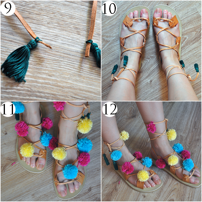 11. Po przymocowaniu wszystkich pomponów - sandałki prezentują się świetnie :)