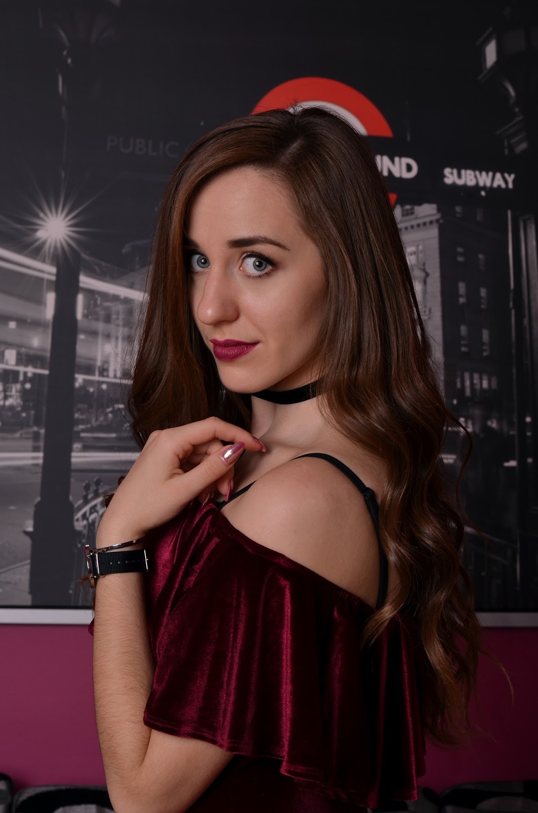 Zobacz oryginał śr., 07/12/2016 - 18:00Witajcie:) Dzisiaj druga propozycja Sylwestrowa. Tym razem sukienka w bardzo modnym w tym roku materiale welurze wraz z równie modną falbanką. Postawiłam na klasyczne dodatki zegarek Daniel Wellington, szpilki (oj rzadko ubieram zwykłe szpilki, a wiem, że lubicie;) oraz choker (tegoroczny hit!:). Nie mogło obyć się tutaj bez mojej pomadki matowej w płynie z Golden Rose w ulubionym śliwkowo-bordowym odcieniu - pasuje tutaj wręcz idealnie. Do sukienek warto zaopatrzyć się również w długą marynarkę. Uwielbiam takie ciuchy, które są uniwersale i można założyć je do wielu stylizacji, a ta z pewnością taka będzie. Nie wiem jak u Was, ale u mnie w górach jest wyjątkowo zimno, ale dzięki temu jest sporo śniegu, a klimat momentami jest bajkowy co zobaczycie na zdjęciach jeszcze w tym tygodniu. Także zaczęła się ta pora kiedy zacznę marznąć na sesjach (choćbym nie wiem jak ciepło była ubrana, to zawsze jest mi zimno, taki ze mnie zmarzluch). Jednak jak dzisiaj zabrałam się za obróbkę zimowej sesji, to mam ochotę na więcej takich zdjęć.