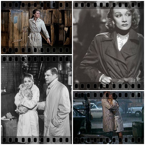 Marlena Dietrich lansowała klasyczny płaszcz nie tylko na dużym ekranie, ale i w życiu codziennym. Nosiła długi, biały trencz niczym elegancka sukienka. Tym samym spopularyzowała wiązanie trencza w pasie, a nie zapinanie go na klamrę. W latach 60-tych stał on się niekwestionowanym klasykiem, który potwierdziła w 1961 roku Audrey Hepburn w słynnej końcowej scenie w "Śniadaniu u Tiffany'ego". Audrey stoi w deszczu przyodziana już w nieco krótszy (tuż za kolano), beżowy trenczu, który jest również w tali związany na supeł. Obecnie zapianie trencza na klamrę uważa się za modowe faux pass. Luźny, związany jakby "od niechcenia" pasek stał się synonimem paryskiego, niewymuszonego, naturalnego szyku.