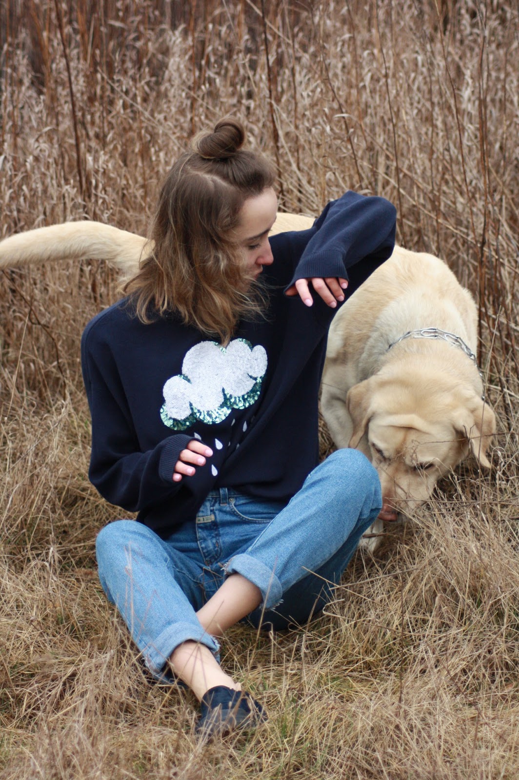 W dzisiejszej sesji gościnnie wystąpił Osti - przepiękny labrador mojego ukochanego fotografa. Outfit, w którym główną rolę odgrywa oczywiście sweter miał pokazać zmienność wiosennej już pogody.