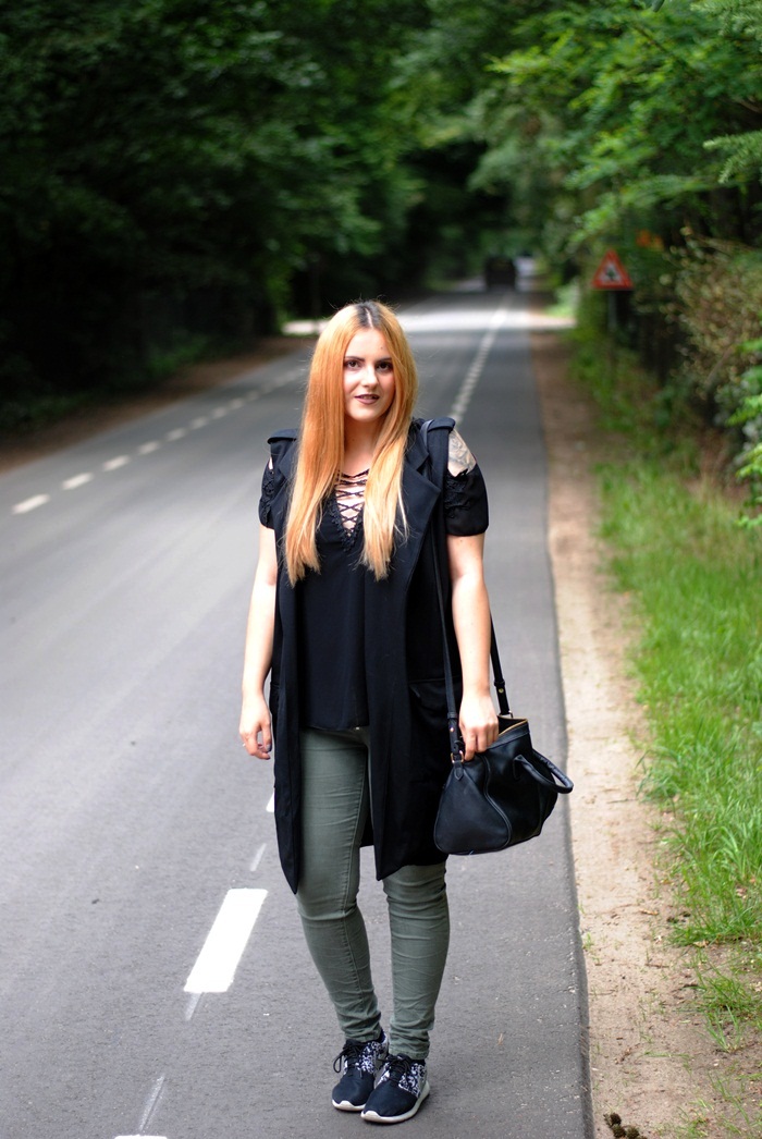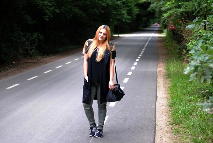bluzka/t-shirt EBUTIK | kamizelka/vest EBUTIK | torebka/bag EVEN&ODD | buty/shoes NIKE | spodnie/trousers NO NAME