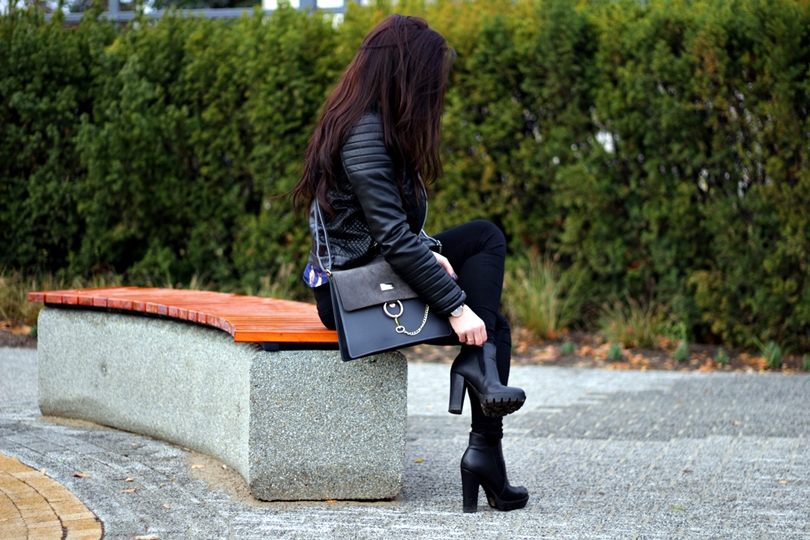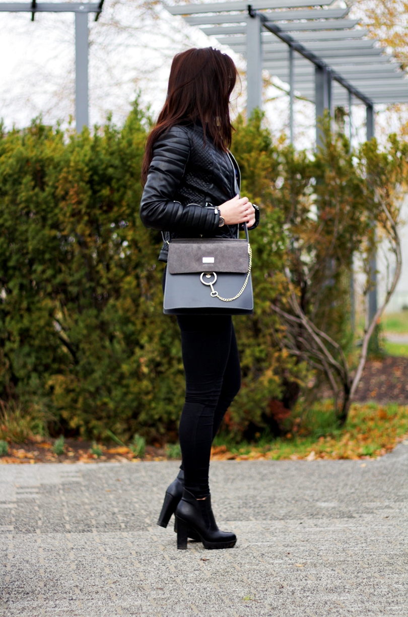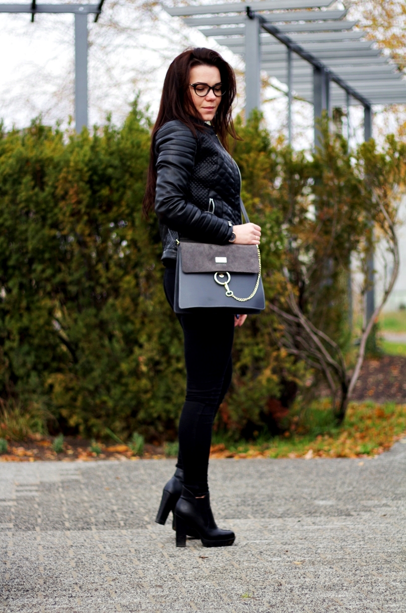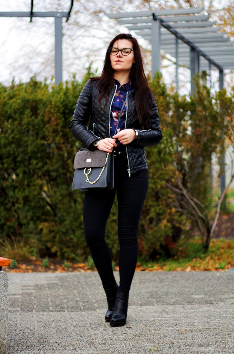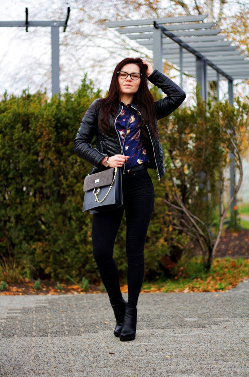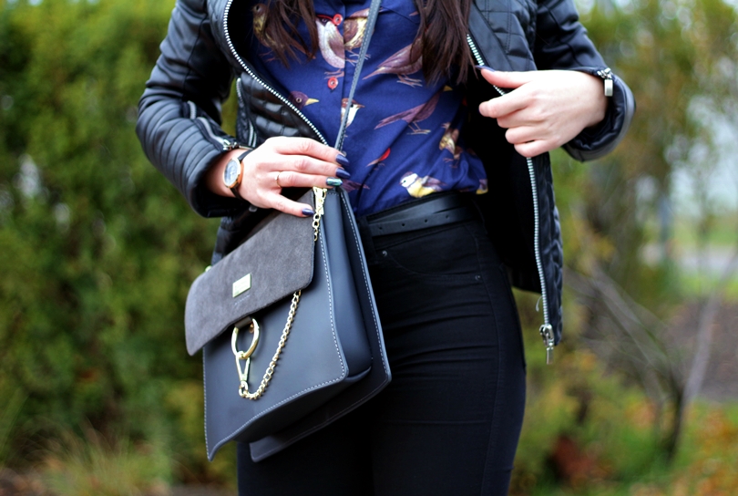 Zobacz oryginał sob., 19/11/2016 - 09:36Jesień to dla mnie troszeczkę jednostajny okres... Martwy czas, w którym mogła bym do zimy śmigać w jednej ramonesce i jednych jeansach - oczywiście czarnych, bo w czerni czuję się ostatnio najlepiej. Cały ten zwykły look wyróżnia skórzana torebka z łańcuszkiem, mega modny obecnie hit od kolorowysklep. Do całości dobrałam czarne botki z pantofelek24 na słupku z traperową, mocną podeszwą i granatową, grubszą koszulę w ptaszki ze stylewe. Zaskoczyła mnie jej jakość, ponieważ jest naprawdę solidnie wykonana, a jeżeli chodzi o koszule to je wręcz uwielbiam więc zwracam szczególną uwagę na jakość i wykonanie. Jako dodatek do całej stylizacji wybrałam piękny zegarek z time&more, który idealnie poprzez swój szary pasek wpasowuje się w jesienne sety.