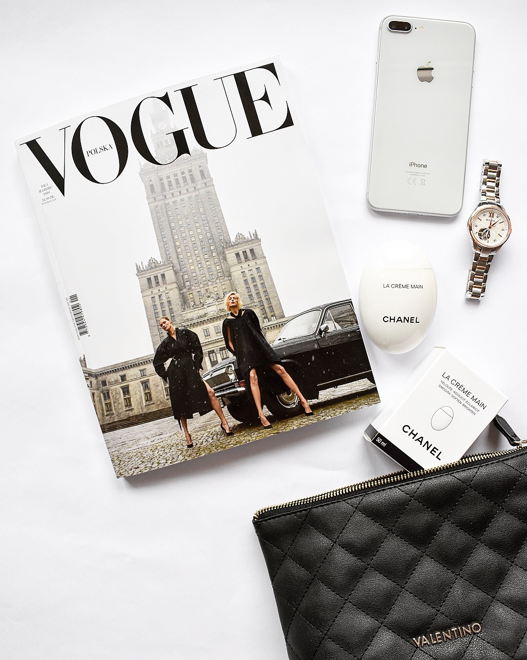 Ostatnia na tym zdjęciu biała rzecz, ale wcale nie najmniej ważna! Polskie wydanie Vogue! Tak, nareszcie się go doczekaliśmy! I wydaje mi się, że jakakolwiek reklama i zachwalanie go jest tutaj absolutnie zbędne. Jeśli go kupujecie, koniecznie wybierzcie opcję prenumeraty. Wtedy dostajecie go w cudnym, białym pudełku.