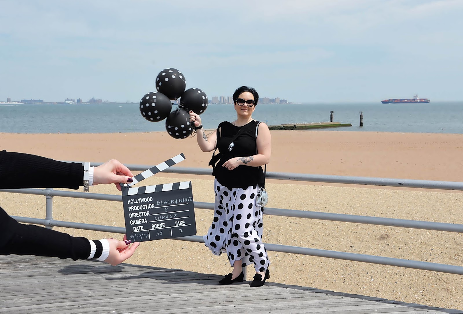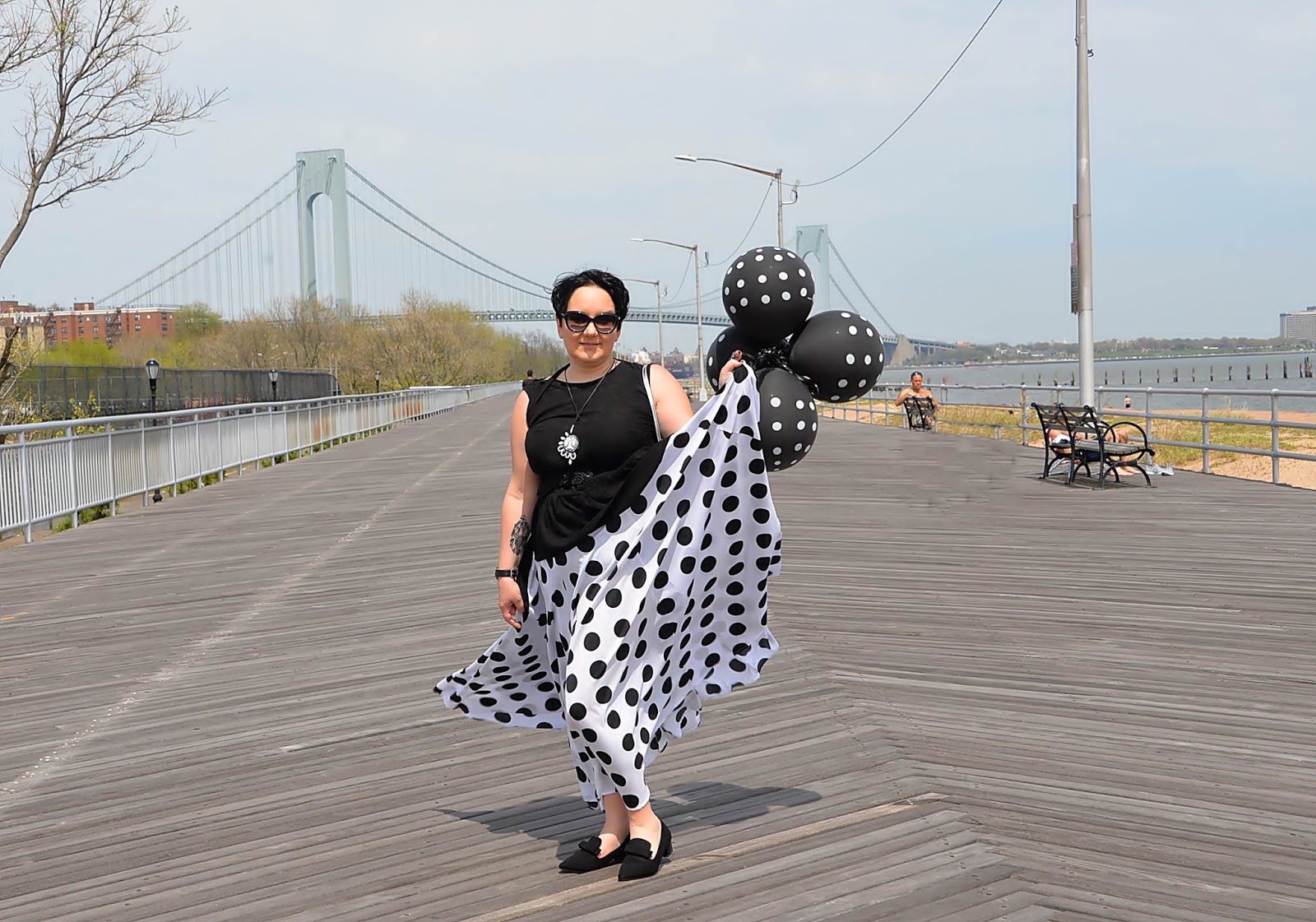 Kupiłyśmy sobie właśnie balony, specjalnie pod naszą wspólna stylizację i poprosiłyśmy o napełnienie helem. I szłam sobie ulicami Manhattanu a nade mną unosiły się baloniki w groszki. Czułam się jak mała dziewczynka. Jakbym miała urodziny. Nowojorczycy mijając nas, uśmiechali się. To było wyjątkowe.