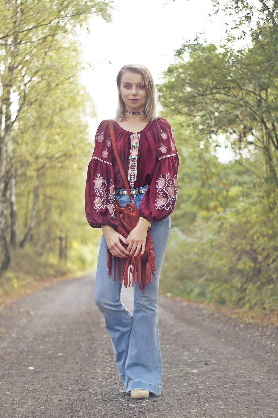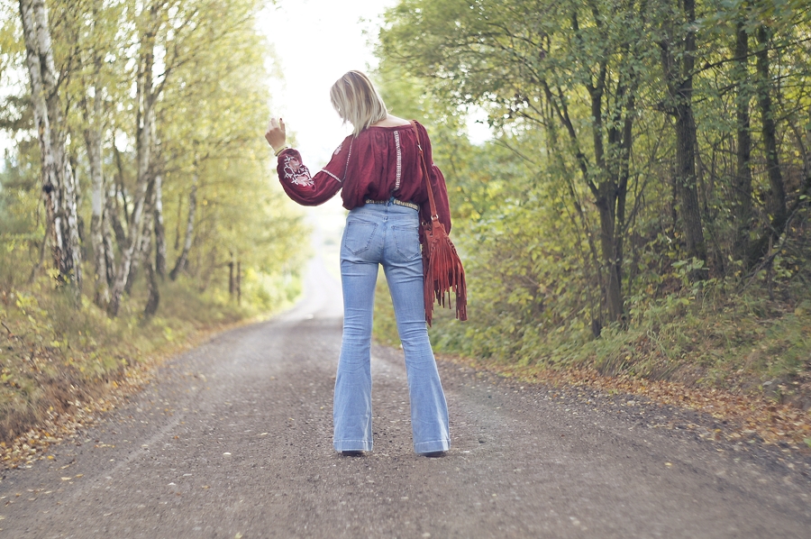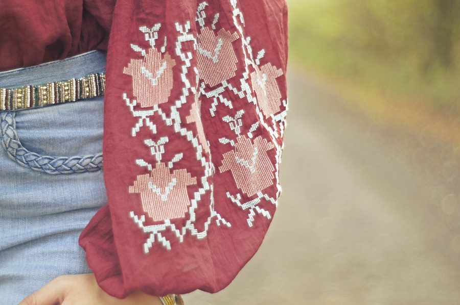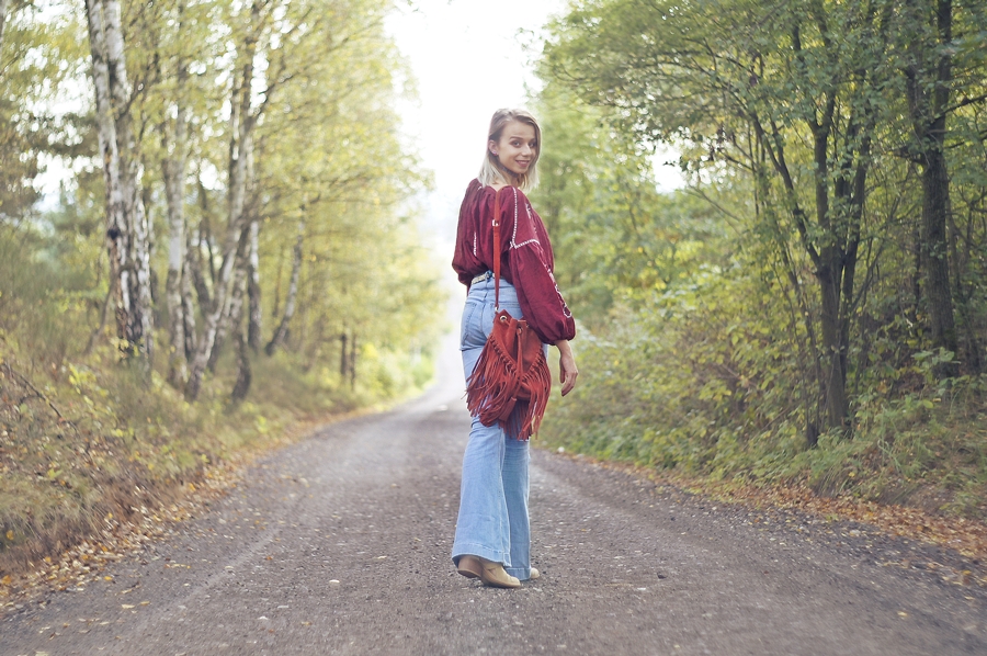 Zobacz oryginał ndz., 02/10/2016 - 09:00Jesień powoli zaczyna pojawiać się na dworze, lecz nie zakładam jeszcze szalików i chust. To jeszcze nie ich pora! Staram się cieszyć słonecznymi dniami i najczęsciej ubierać się stosownie do pogody. Tym razem znów powróciły dzwony i ulubiony burgund. Uwielbiam ten kolor już od tamtego roku kiedy wyszukałam poncho w tym kolorze. Powoli wracam do żywych po lekkim przeziębieniu. Mój tygdniowy urlop spędziłam popijąc herbatę z miodem i cytryną oraz posiłki z nutką czosnku. Mam nadzieję, że następnym razem na urlopie bardziej poszaleję.