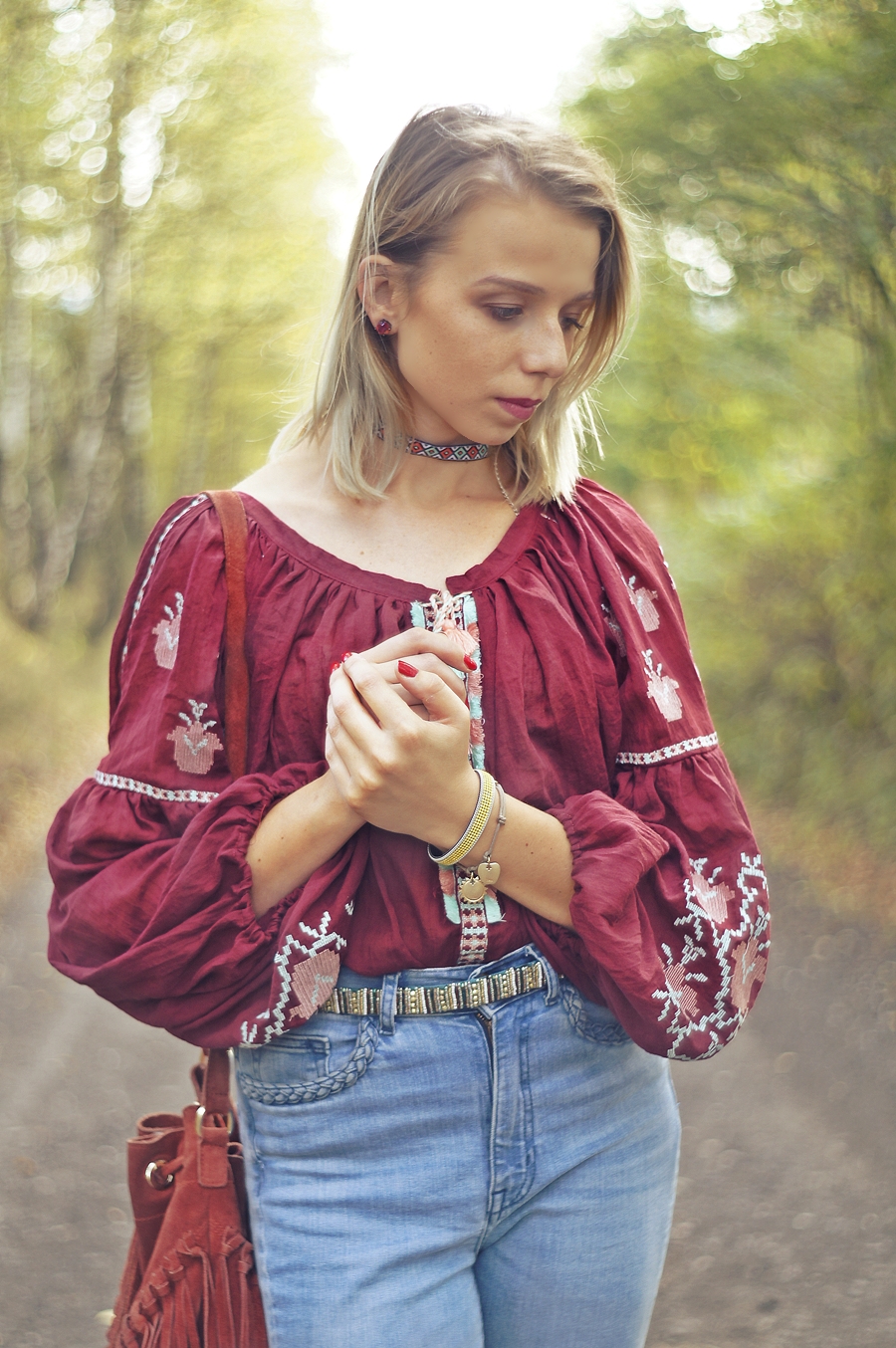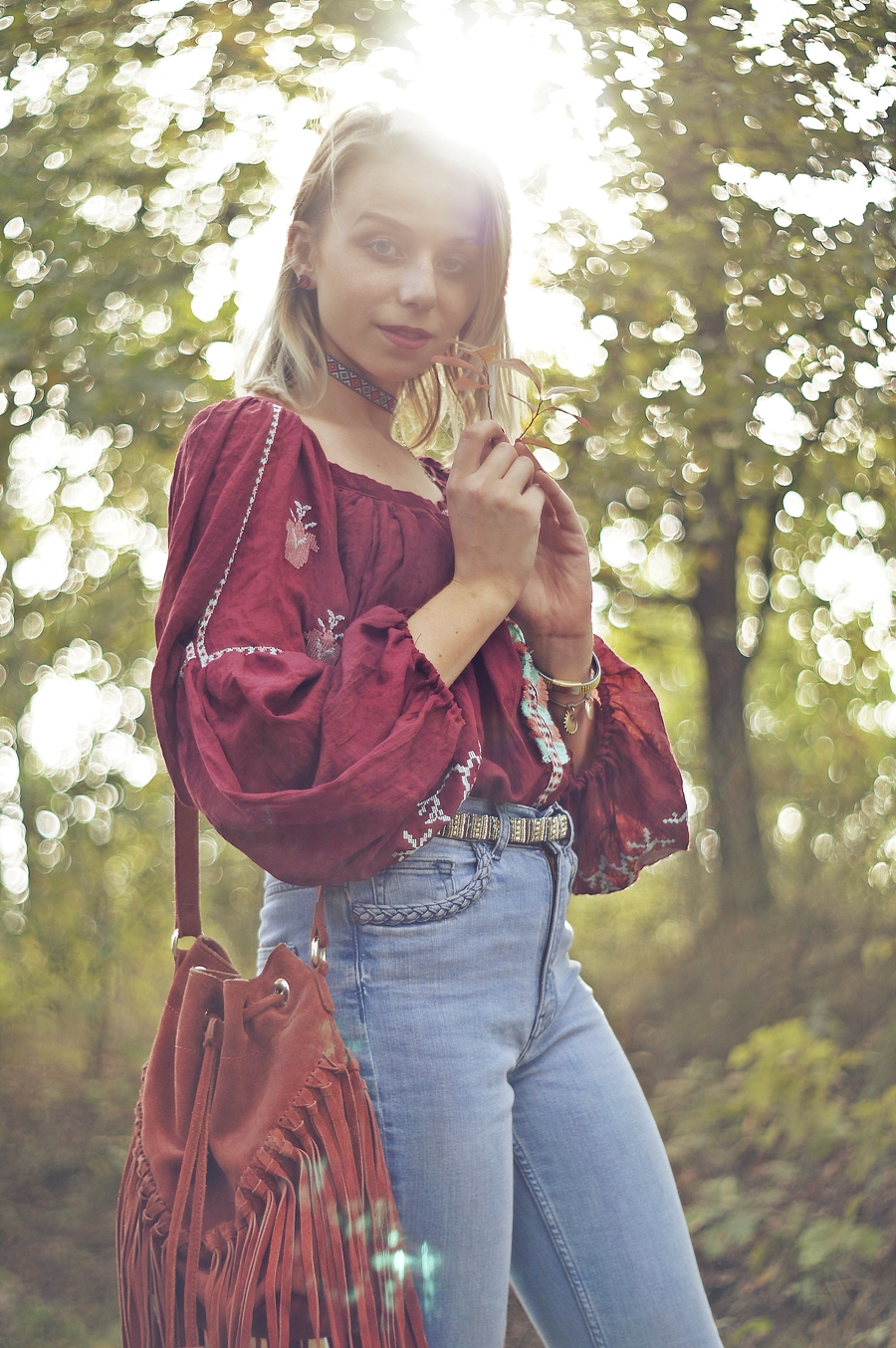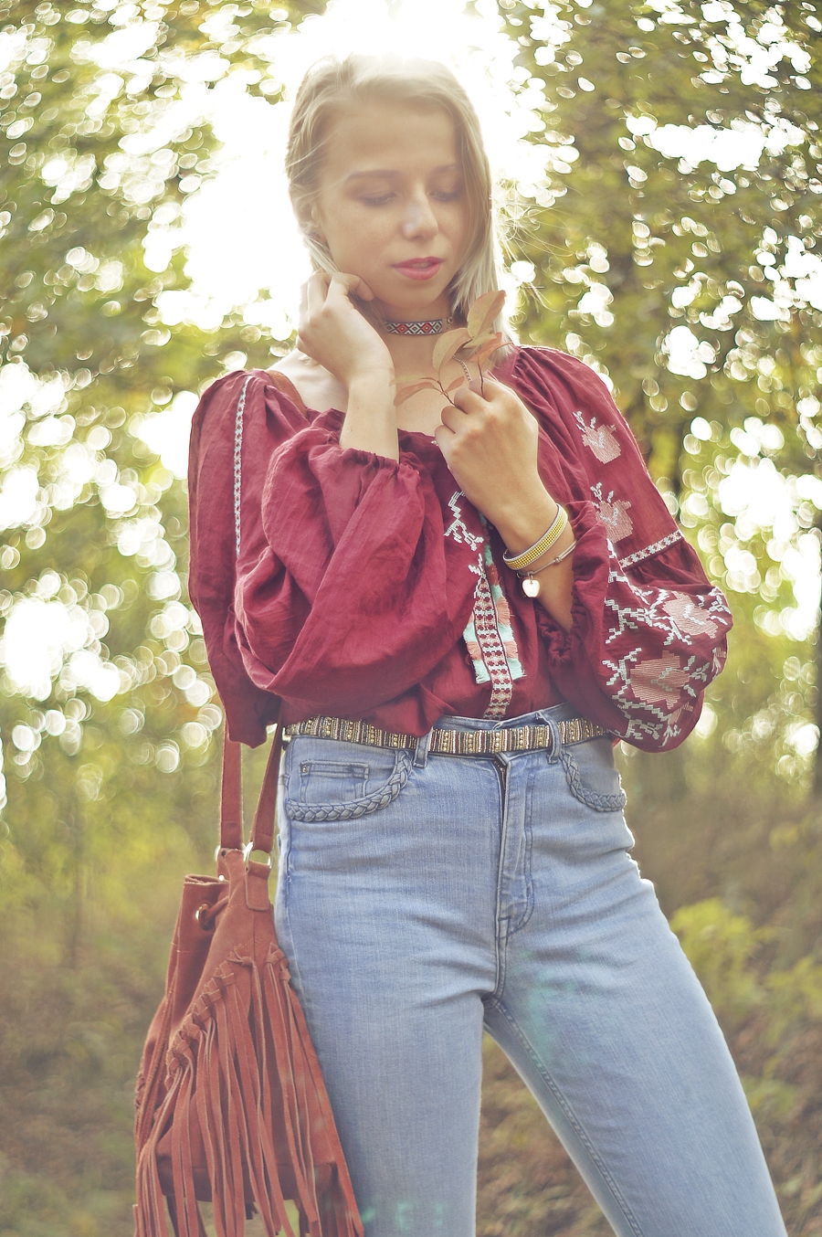 Zobacz oryginał ndz., 02/10/2016 - 09:00Jesień powoli zaczyna pojawiać się na dworze, lecz nie zakładam jeszcze szalików i chust. To jeszcze nie ich pora! Staram się cieszyć słonecznymi dniami i najczęsciej ubierać się stosownie do pogody. Tym razem znów powróciły dzwony i ulubiony burgund. Uwielbiam ten kolor już od tamtego roku kiedy wyszukałam poncho w tym kolorze. Powoli wracam do żywych po lekkim przeziębieniu. Mój tygdniowy urlop spędziłam popijąc herbatę z miodem i cytryną oraz posiłki z nutką czosnku. Mam nadzieję, że następnym razem na urlopie bardziej poszaleję.