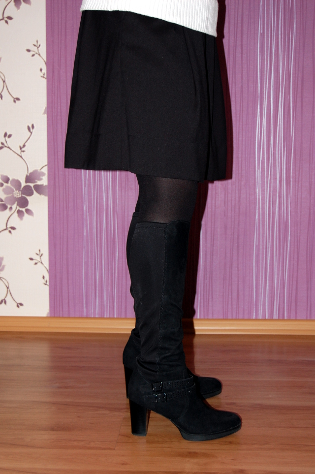 Golf-Esprit (sh), spódnica-Zara (sh), ramoneska-Lidl, kozaki-Deichmann, torebka, wisior-butik.