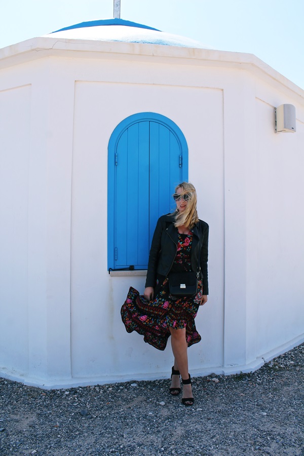 Zobacz oryginał ndz., 14/05/2017 - 20:04If you read my blog on the regular, you probably know that I'm a huge fan of big prints. Flowers are my absolute favorite motif this season. The dress I am wearing in today’s post is my latest TOSAVES's find. I could not have been happier when this dress came in time for the Greek baptism I was in last week. As the weather was crazy that day (as you can probably see by the photos), I decided to wear it with my leather jacket.